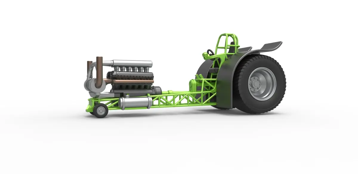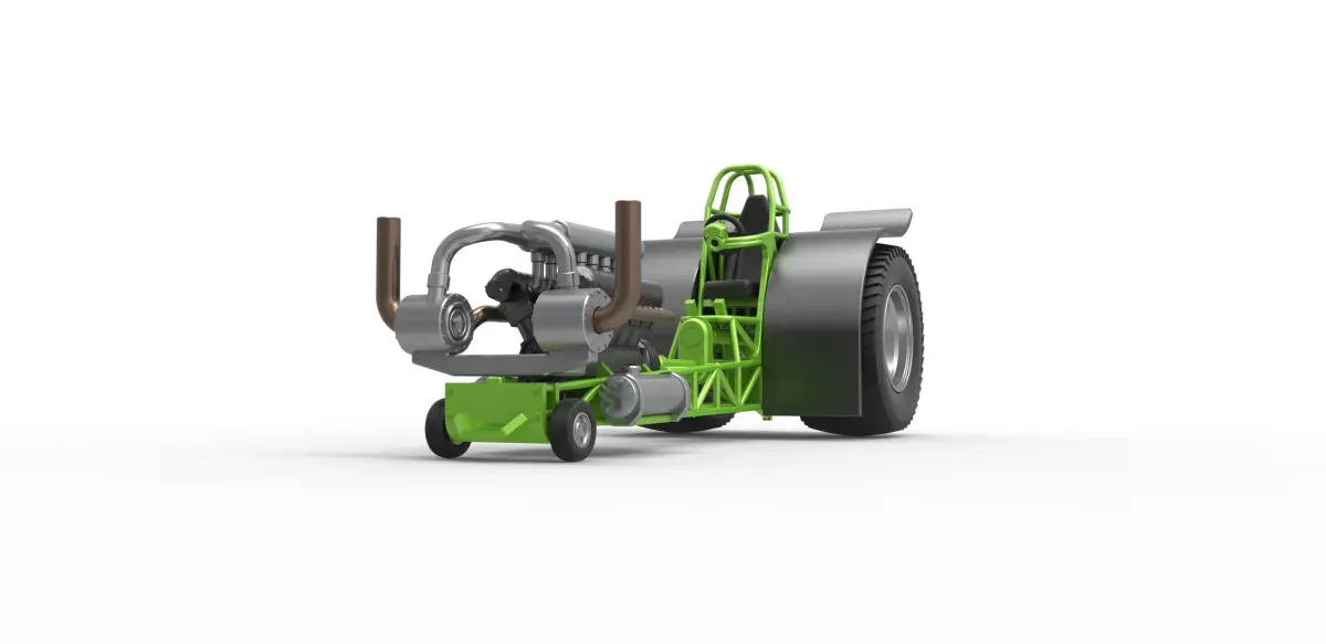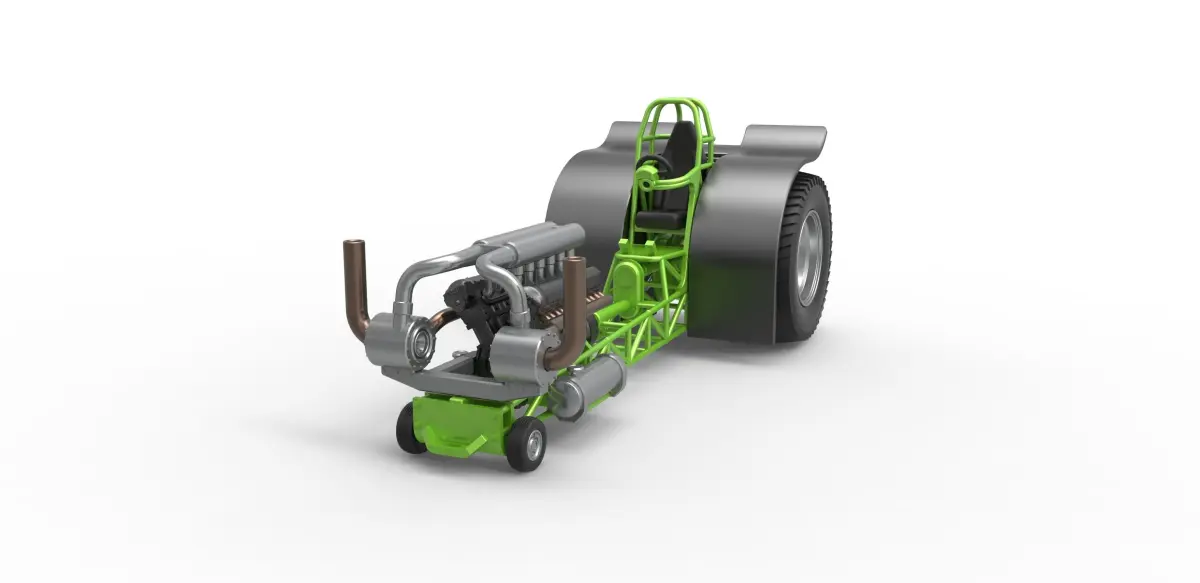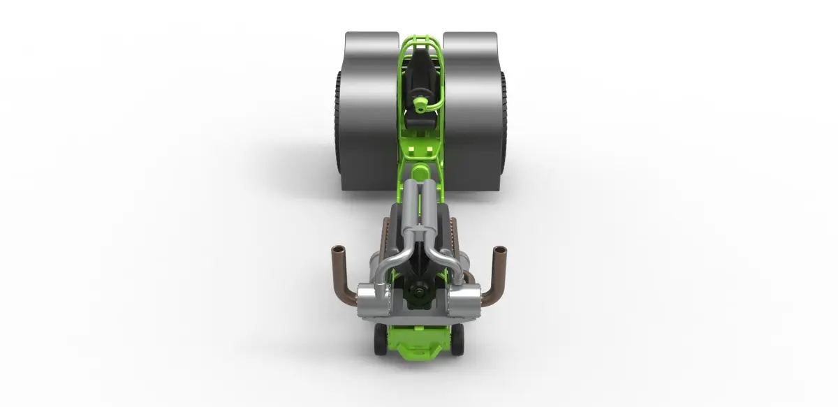 The model consists of parts: Body, Engine front part, Engine main part, Engine top part, Front rims, Front tires, Left exhaust pipe, Rear rims, Rear tires, Right exhaust pipe, Seat, Shell, Side exhaust pipes, Steering wheel, Tank.