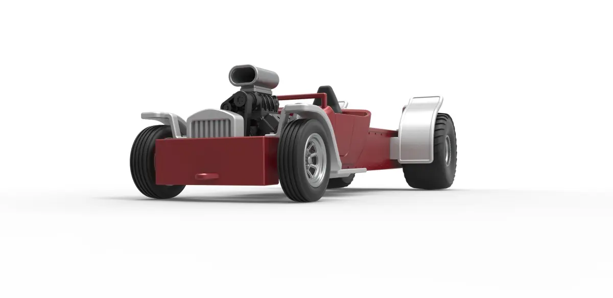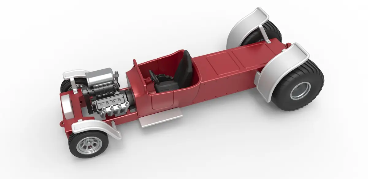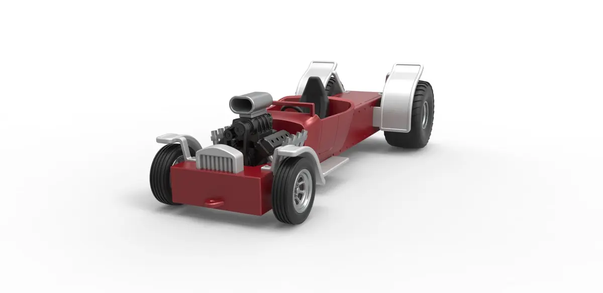 The model consists of parts: Air intake, Body, Bottom insert, Engine, Front left fender, Front right fender, Front rims, Front tires, Gear shifter, Left exhaust pipes, Radiator, Rear left fender, Rear right fender, Rear rims, Rear tires, Right exhaust pipes, Seat, Shell, Steering wheel, Weight.