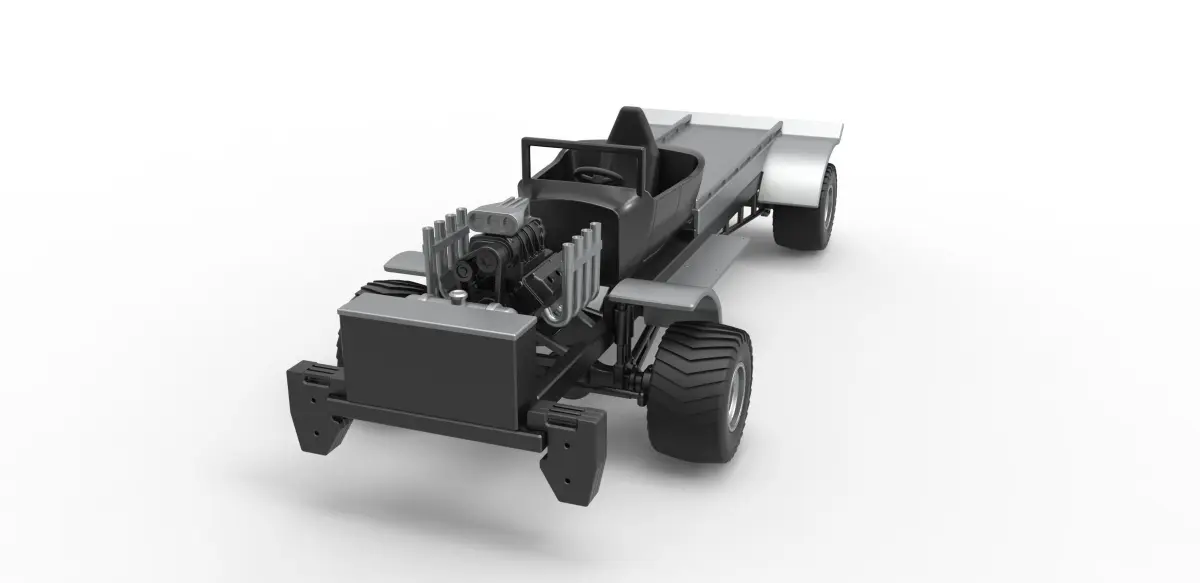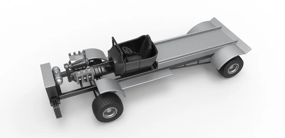 The model consists of parts: Air intake, Box cap, Box, Engine, Exhaust pipes, Frame front part, Frame rear part, Gear shifter, Left front fender, Rear fenders, Right front fender, Rims, Seat, Shell, Steering wheel, Tank, Tires, Weights.