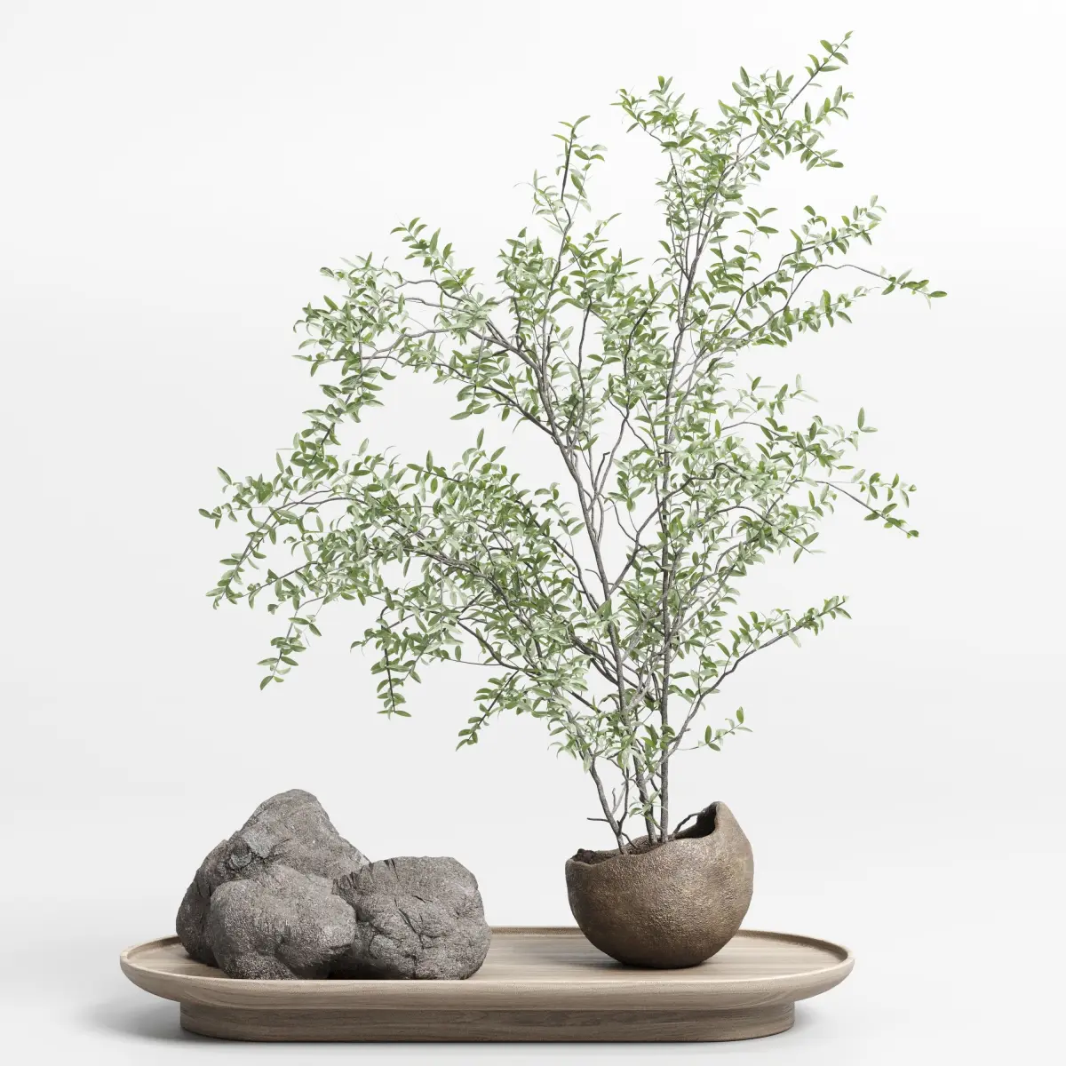 Pulm branch in dirty brown concrete vase - bouquet set 37