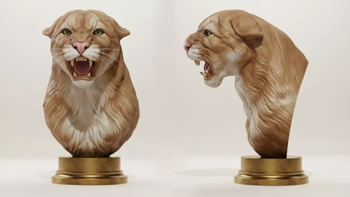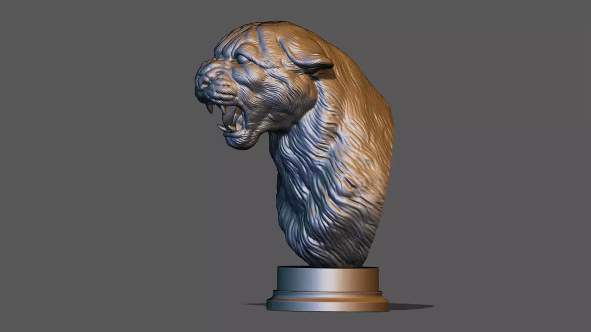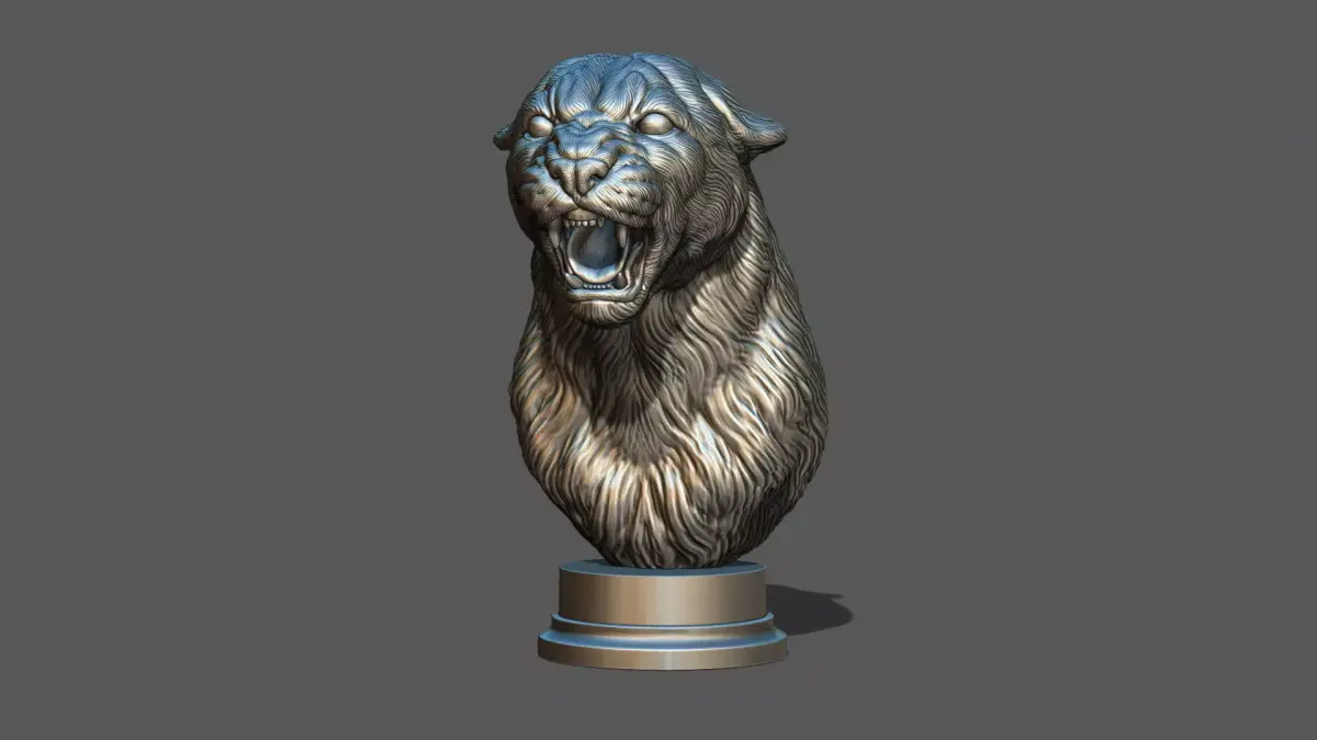 500K STL, OBJ triangulated, Puma cougar roar head bust on the base merged