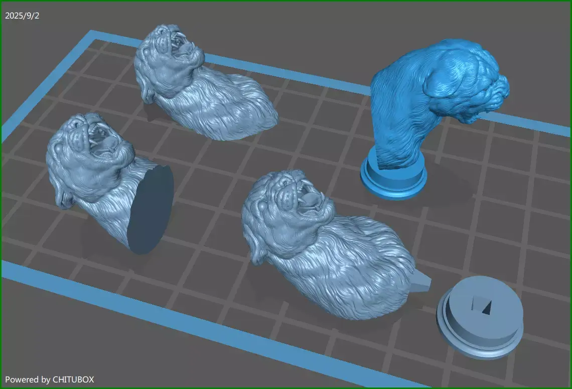 520K STL, OBJ triangulated, Puma cougar roar head bust on the base in parts