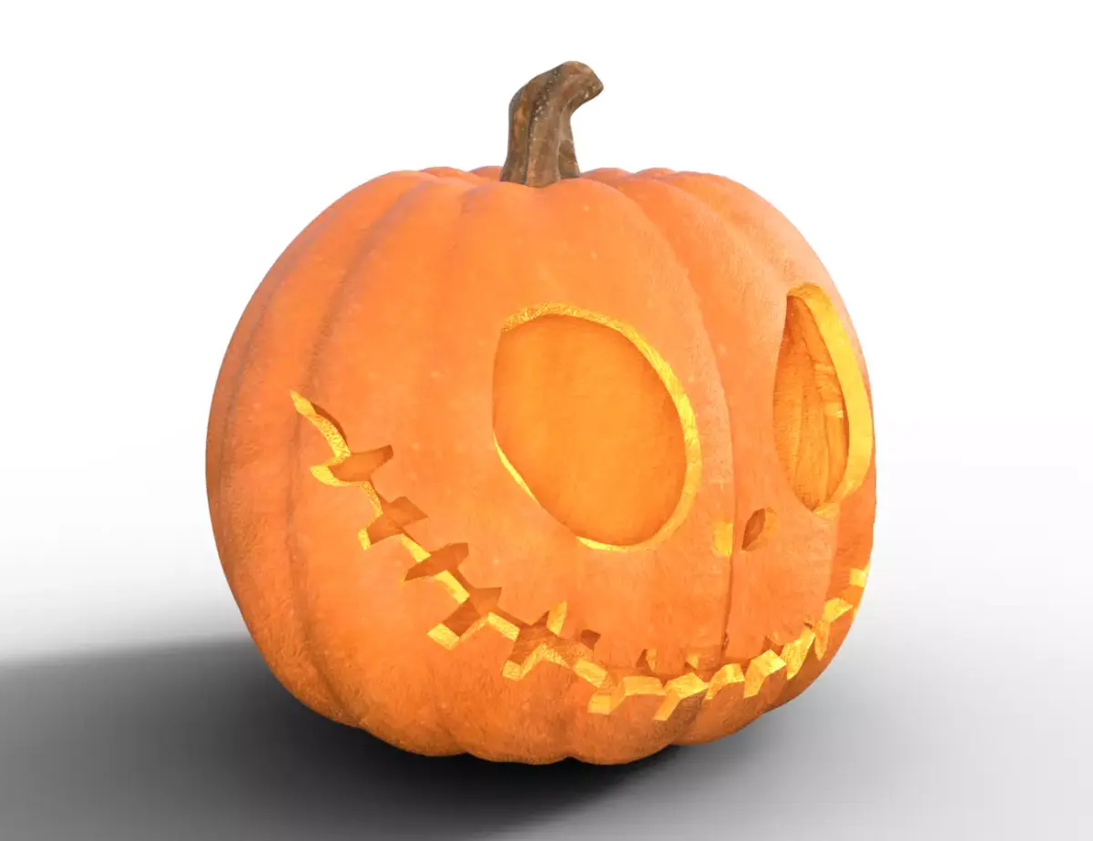 Crafted with precision and a touch of eerie whimsy, this 3D Jack-o'-Lantern embodies the playful yet haunting spirit of Halloween. The model features exaggerated, stylized proportions and a hand-carved expression reminiscent of classic stop-motion aesthetics, with large oval eyes, a skeletal nose, and a mischievously jagged smile. The glowing inner light spills through the asymmetrical teeth and hollowed features, invoking a sense of life within the inanimate.Technically, the model is meticulously UV-unwrapped, ready for high-resolution texturing or baking workflows. Clean topology ensures optimal performance in both real-time engines and offline renderers, with:
