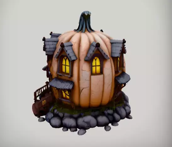 The model features a pumpkin-shaped haunted house with stylized textures, cartoon proportions, and festive Halloween details. Built with clean topology and optimized UVs, it is game-ready and works seamlessly across multiple platforms.