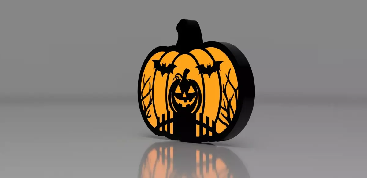 What you getA pumpkin‑shaped silhouette lamp with a smiling jack‑o’ face, bats, trees, and fence, designed as a two‑part print: a black front frame and an orange translucent back panel that glows with an LED. The compact, flat profile makes it perfect for windowsills, mantels, or shelf displays.