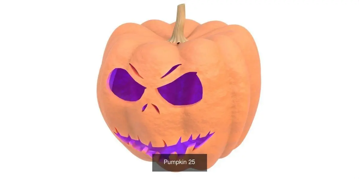 High polygonal 3D model of a pumpkin with a cut-out image for the Halloween holiday.