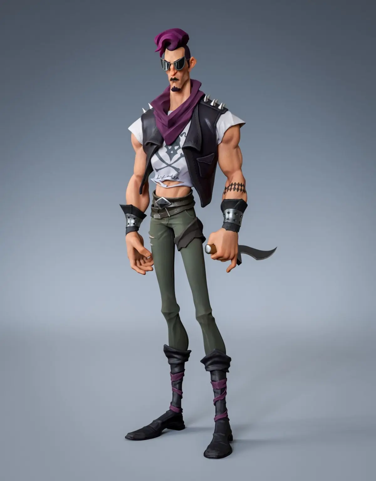 Punk.Highly detailed, detailed character Batman Samurai.Has 7 sets of ready-made characters of different variations, which I have prepared. There are multiple individual parts (31 parts) from which you can assemble your options.Customizable materials will also add variety.Physically model the behavior of the armored skirt.There are facial expressions and eye movements using morph targets.