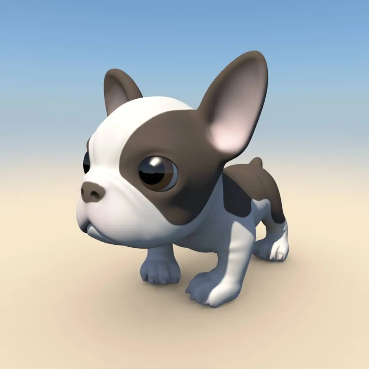 Polygonal model of a French Bulldog puppy with morphs in Maya, Obj and Fbx formats. The base mesh can be subdivided. The puppy is textured with hand painted maps and comes with 41 morphs, including phonemes, eye blinks, nose movement and facial expressions. Textures are in JPEG format, and layered PSD files and instructions for using the morphs are also included.