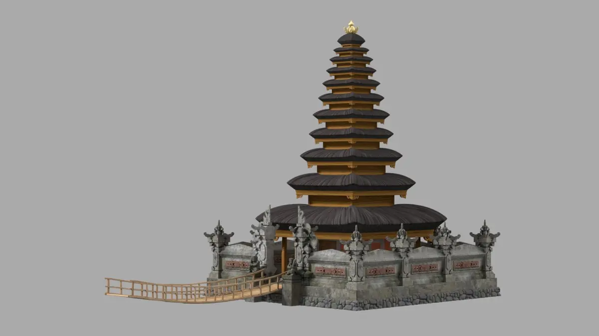 "A detailed prop based on the revered Pura Jati Batur, capturing spiritual energy and historical grandeur. Ideal for religious scenes, heritage landscapes, or cinematic moments.