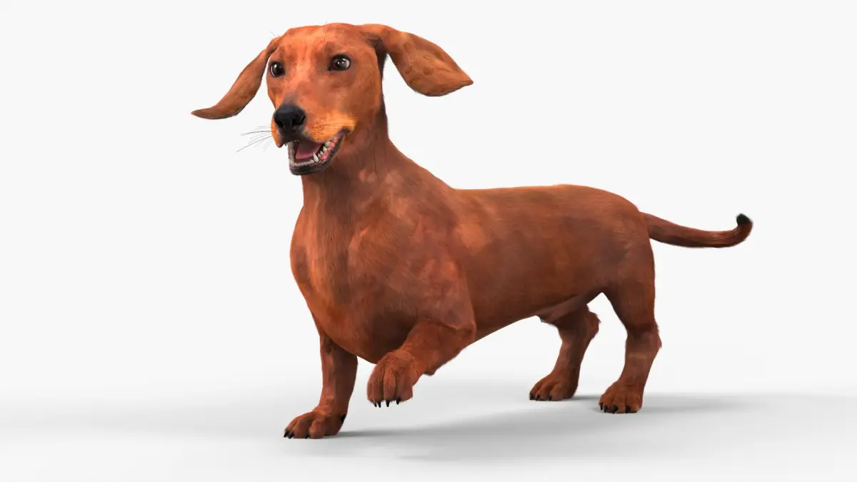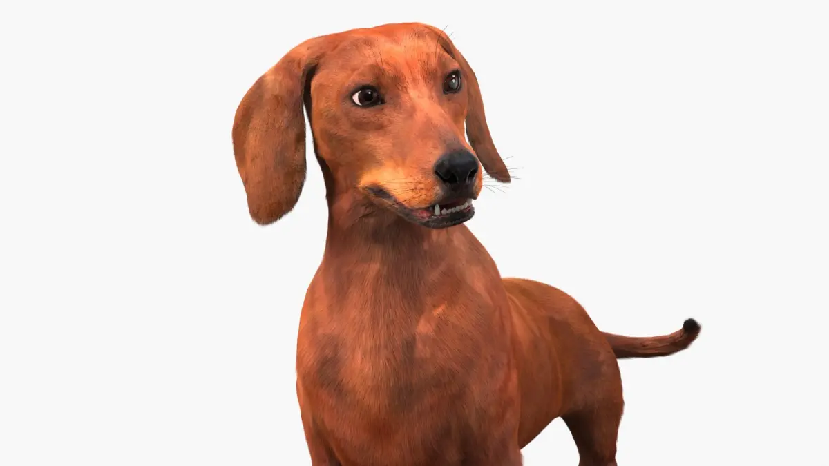 Purebred Dachshund Pet with Sleek Fur Rigged for Maya is a three-dimensional model of dachshund, a popular breed known for its distinctive long body and short legs, often referred to as a "wiener dog."