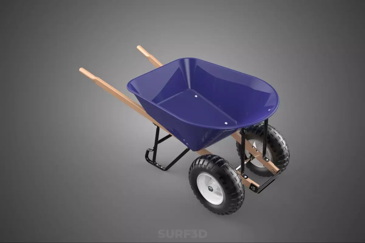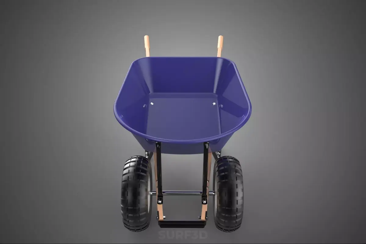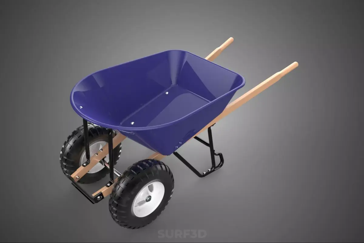 KEYWORDS: Wheelbarrow, Utility Cart, Two-Wheeled Barrow, Hand Truck, Materials Handling, Purple Blue Finish, Dual-Tone, Bucket Tray, Composite Load Bed, Wooden Handles, Ergonomics, Stability, Manual Transport, Garden Equipment, Construction Tool, Agricultural Implement, Pneumatic Tires, Hauling Apparatus, Bulk Material Conveyance, Chassis, Load Distribution, Heavy Duty Cart, Ash Wood, Hickory Handles, Enamel Finish, Powder Coated Steel, Tipping Mechanism, Utility Vehicle, Cart Design, Lateral Support.