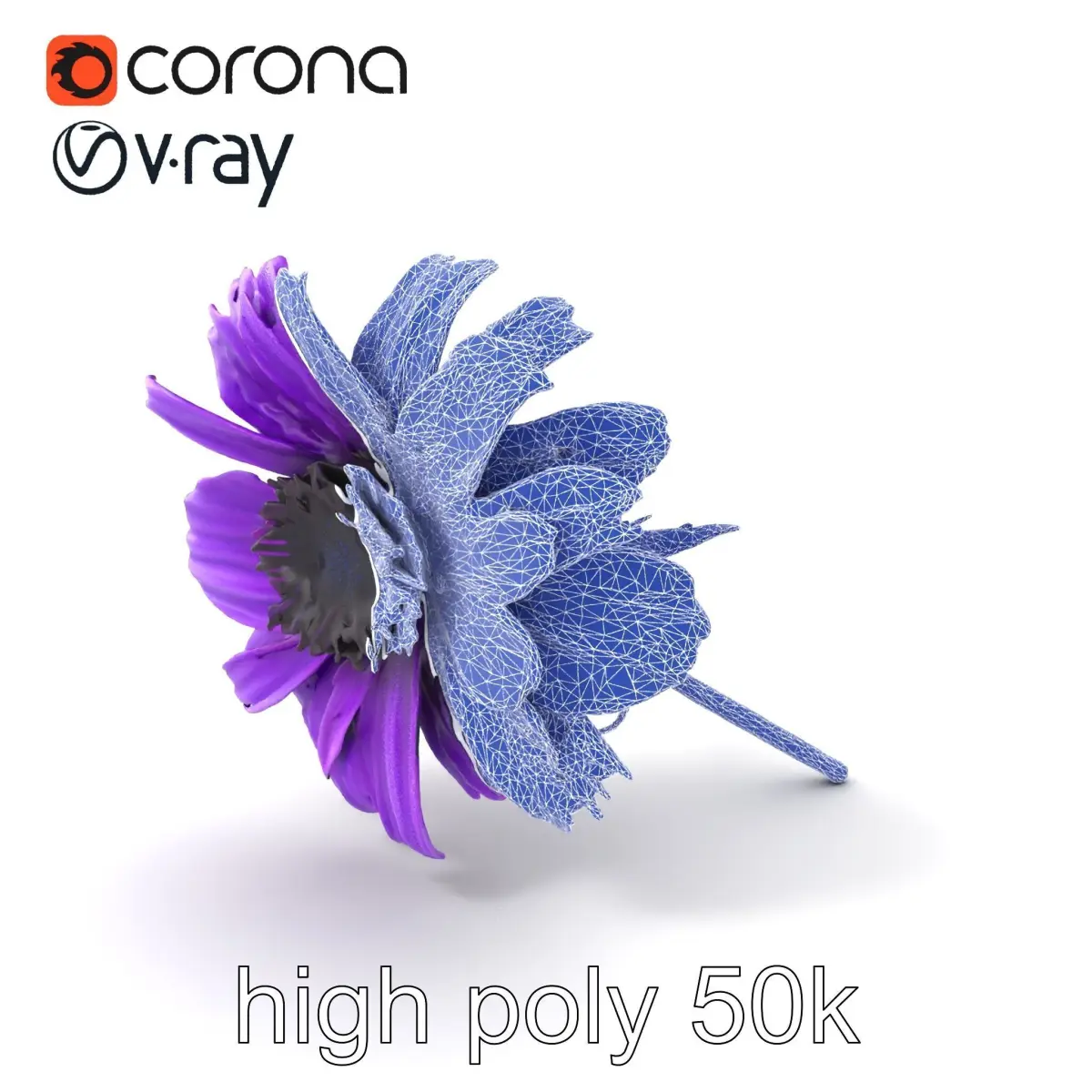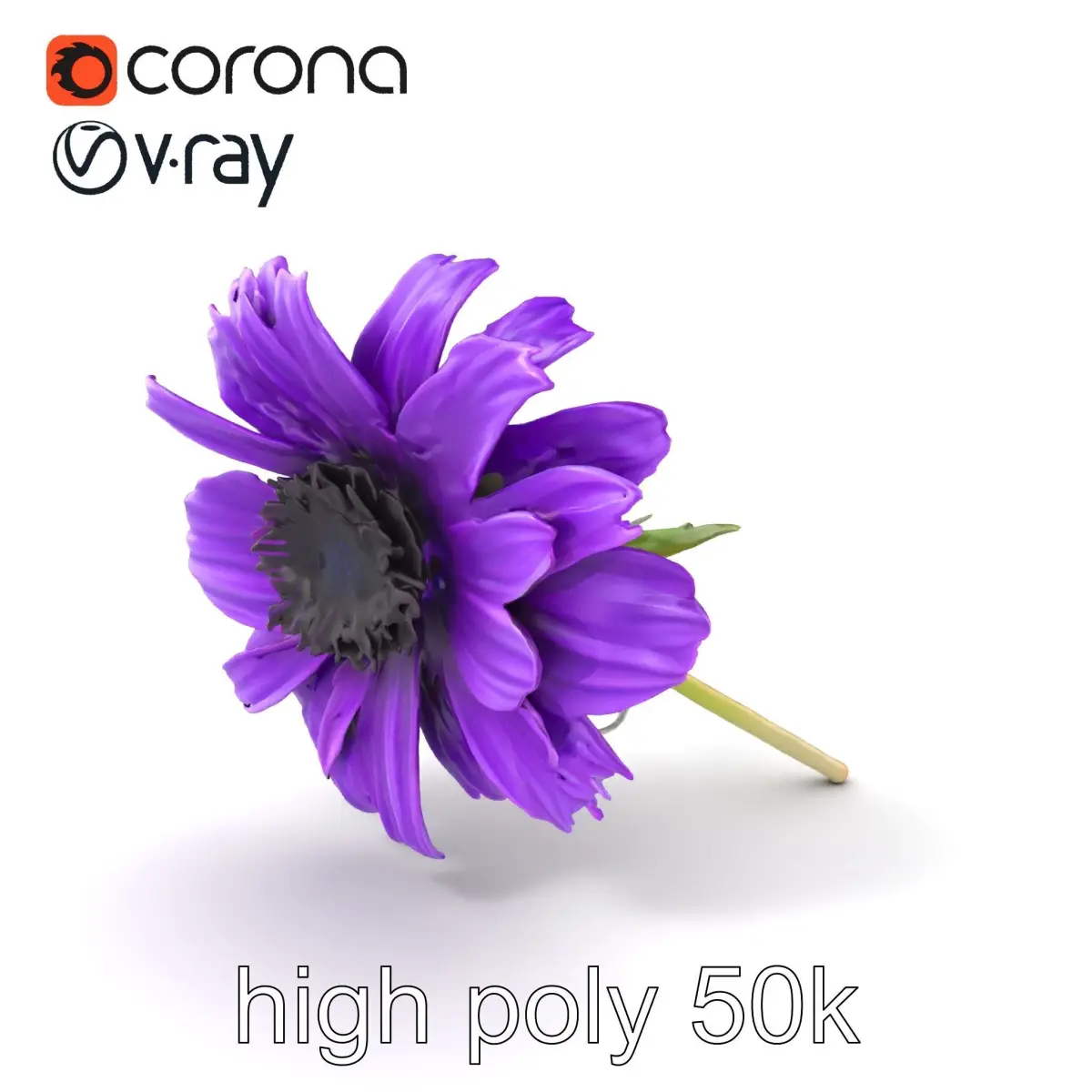 Each model has 3 levels of detail: low-poly, middle-poly, and high-poly, which allows for the use of this model in production rendering (such as 3ds Max, Maya, Cinema4D, Blender, V-Ray/Corona/Cycles and all other), game engines (Unity and Unreal compatible), and interactive presentations, providing a choice of detail based on the LOD System principle. This purple cornflower model is perfect for adding detail to outdoor scenes, botanical visualizations, or educational tools. The model's textures are PBR, Diffuse, NormalMap, and reflection/roughness/metallic, which are suitable for any modern rendering engine. All models are accurately unwrapped and have no overlapping UVs. All textures are 4096x4096 in size. If you like this model, please leave a comment and give us a like!