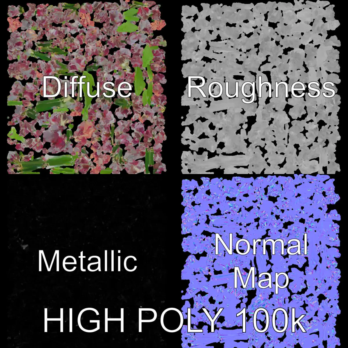 The PBR textures include Diffuse, NormalMap, and reflection/roughness/metallic, perfectly suited for any modern rendering engine, with all textures at 4096x4096 resolution. Fully unwrapped UVs ensure no overlapping, maintaining texture integrity.