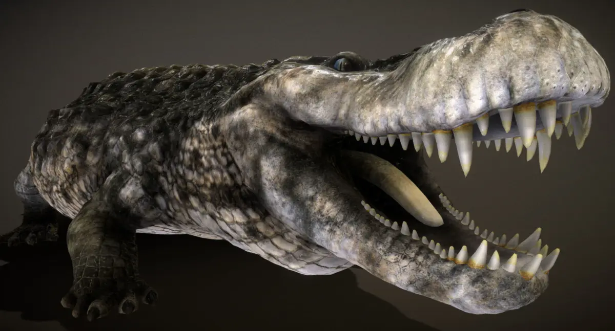 Purussaurus was a giant prehistoric caiman that lived during the Miocene epoch, around 8 million years ago, in the tropical wetlands of South America. It was one of the largest known crocodilians, reaching lengths of up to 12 meters (39 feet) and weighing an estimated 8 tons. With its massive, powerful jaws and conical teeth, Purussaurus was a formidable predator, likely preying on large mammals, fish, and other reptiles in its riverine habitat. Fossils of Purussaurus have been found in regions of modern-day Brazil, Peru, and Colombia, shedding light on the diverse megafauna of ancient South America.