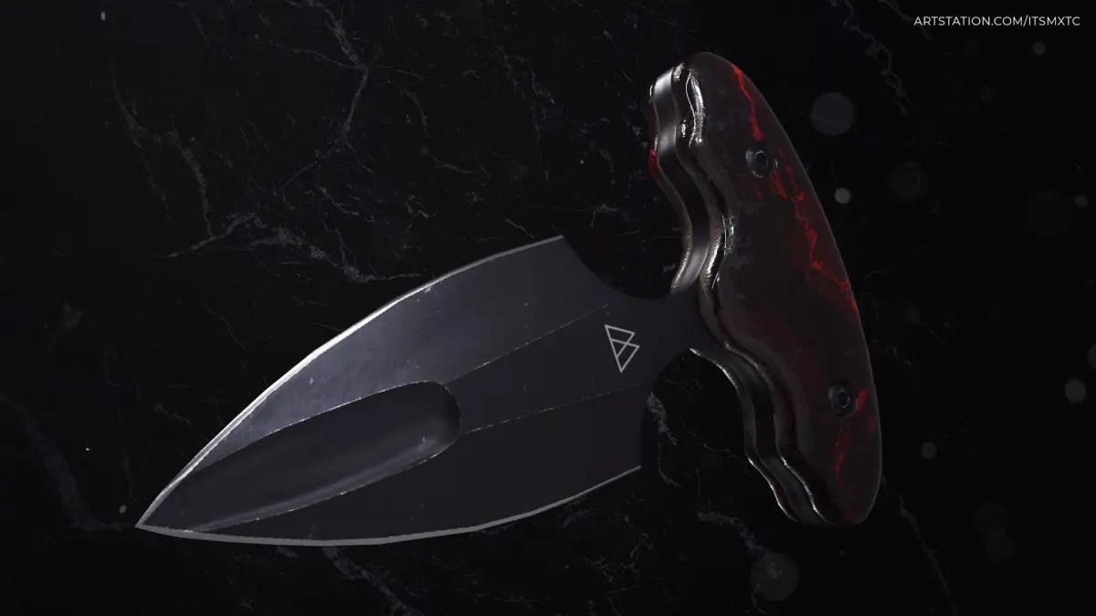 Game-ready modern push dagger with marble handle