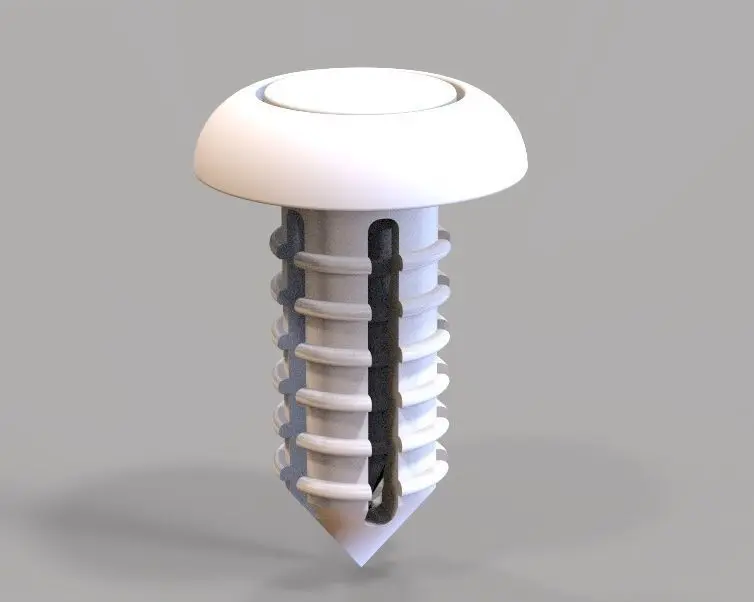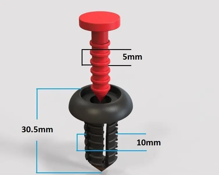 This is a auto car push retainer clip or blind rivet. Size(WXL): 10mmX30.5mm. For 3d printing use hard plastic to print the nail and hard plaxible plastic for the royal plug.Applications1: Defender Door Card Interior Weatherstrip ; Applications2: NYLON CHRISTMAS TREE Carpet Floor Mat Clips. Material: Plastic.