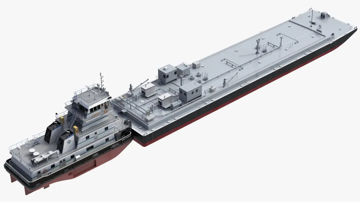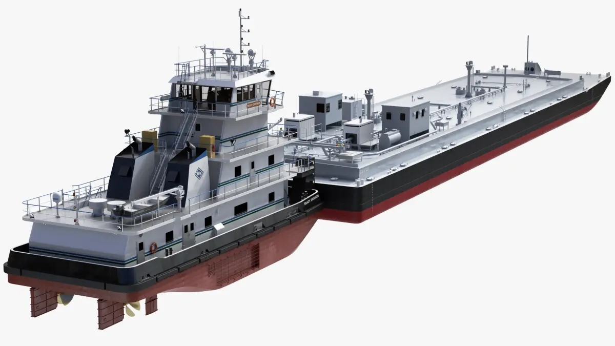 High detailed and realistic 3d model of Towboat Brady Dawson with Tank Barge.