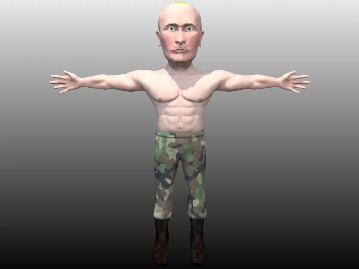 Gladimir Trutin caricature. Low poly and game ready 3D model with PBR textures.NOTE! This character is not made as show of support to the terrorist dictator Putin and his war criminal actions! This is mearly work of art which i shared with the world so people can use it in satirical and similar manner