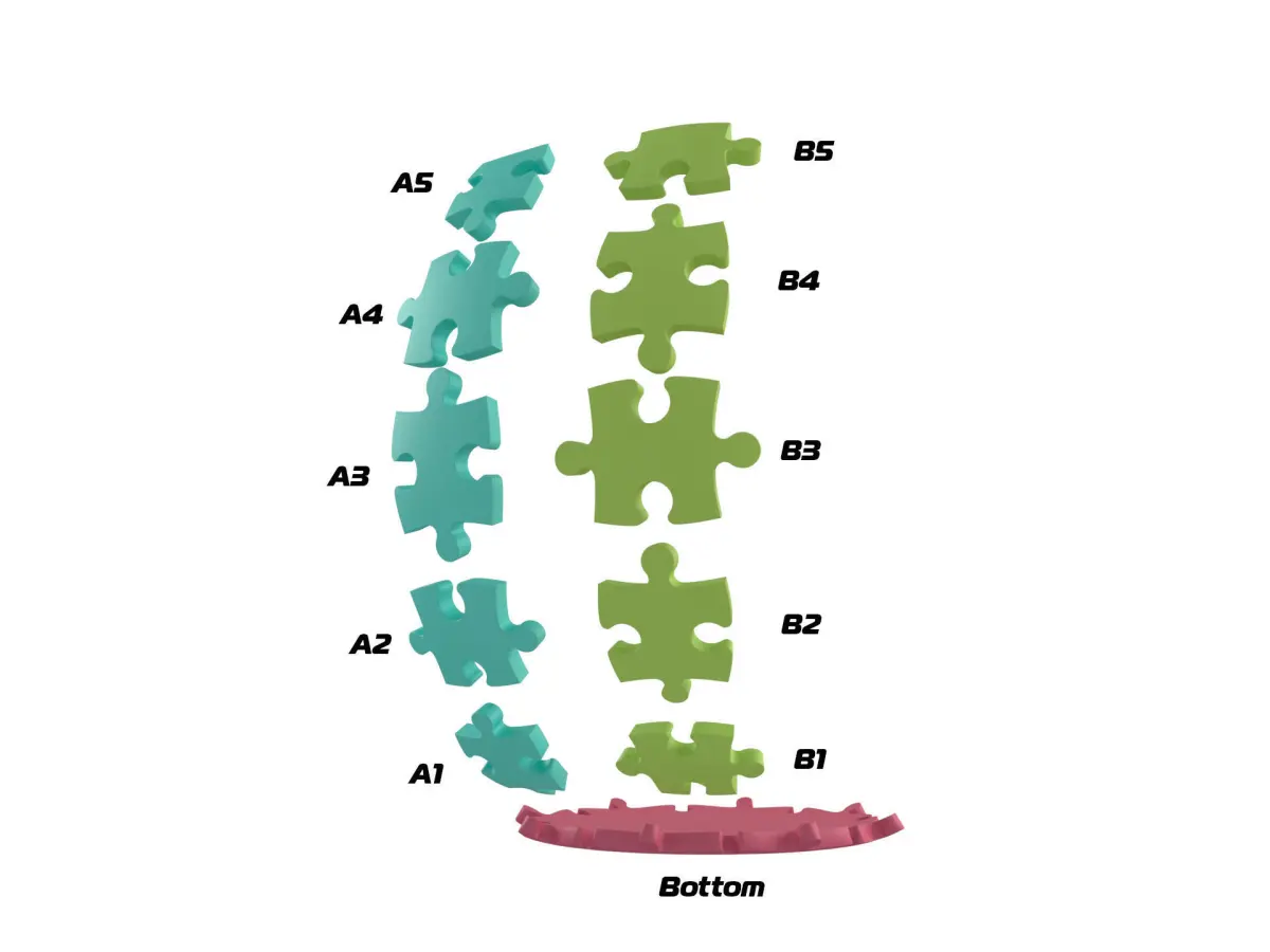 Pot of puzzle piecestwo vertical lines from the puzzles are repeated 8 timesdiameter - 170 mmthickness - 5 mmdistance between puzzles -0.5 mm