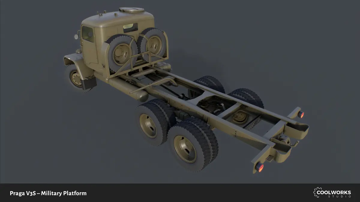 PV3S Truck – Military Platform comes in two color variants – military green and military brown, two geometry variants – with or without interior, both including 6 mid-to-low-poly LoD levels (LoD0 is very detailed and can optionally be excluded). All pieces are fully modular and can be combined between different colors, LoD variants or prefabs.