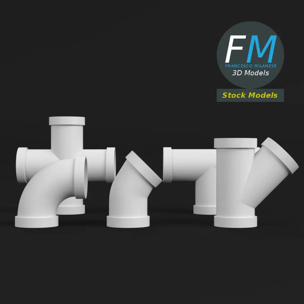 PVC pipe joints 3D Model. 5 individual objects (cross joint, t joint, y elbow joint, curve, 45 angle) sharing the same non overlapping UV Layout map, Material and PBR Textures set. Production-ready 3D Model, with PBR materials, textures, non overlapping UV Layout map provided in the package.