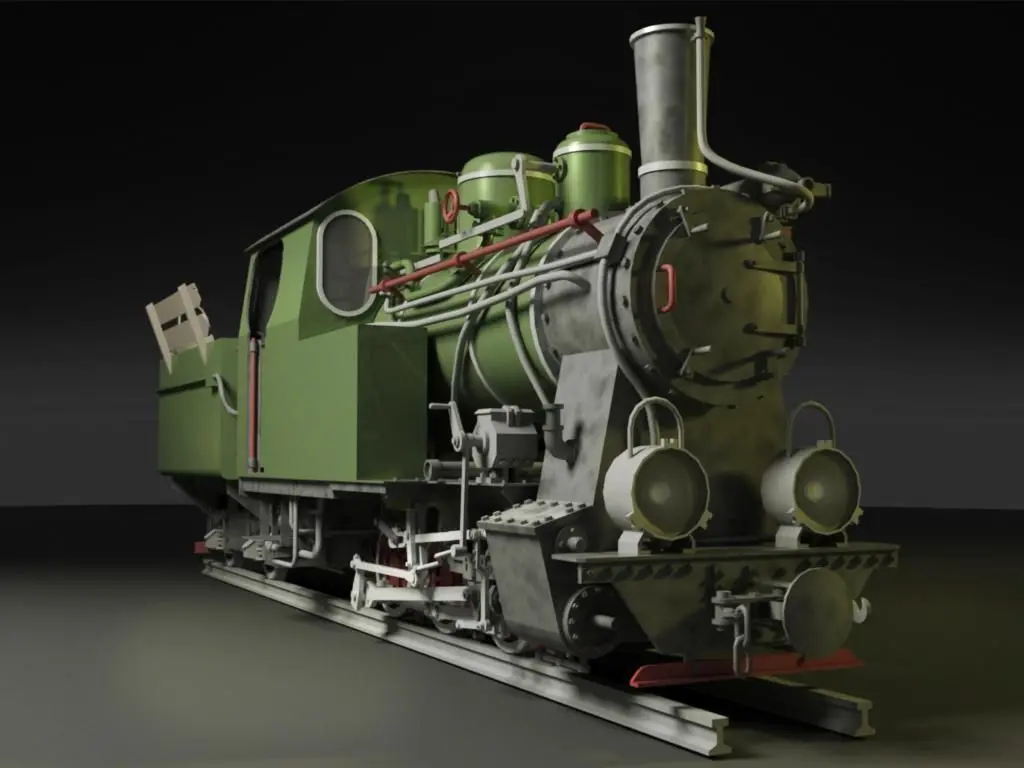 Scene contains several arch&design as well as a few standard materials, some lights and a fake 'sky' primitive. No texture maps have been included. Every component (eg: boiler, wheel, frame, valve gear etc) have been named and separated appropriately. All valve gear components are separate. Note that model does not contain any instancing. Rendered using Mental Ray.