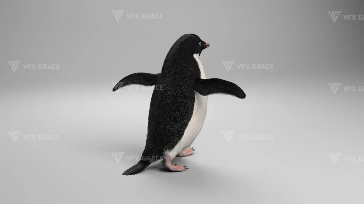 This is a high-quality pygoscelis model with multiple UDIM 4K maps, realistic fur, detailed rigging, 4 vivid and cute animations and realistic muscle structures. The resolution of some feather maps are 5000*5000, which is high enough for a realistic effect; and there are complex feather models and maps created in Blender, as well as some fine rigging which controls the movement of the body flexibly. This model is made with Blender and Cycles renderer at real-world scale.