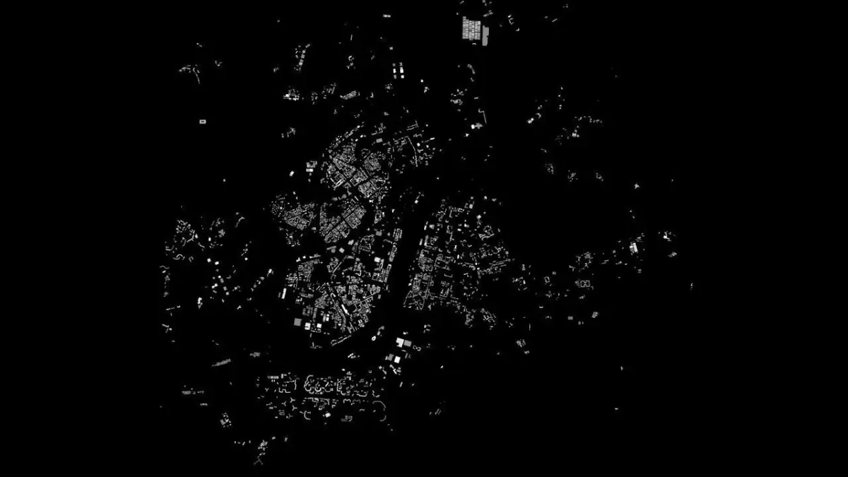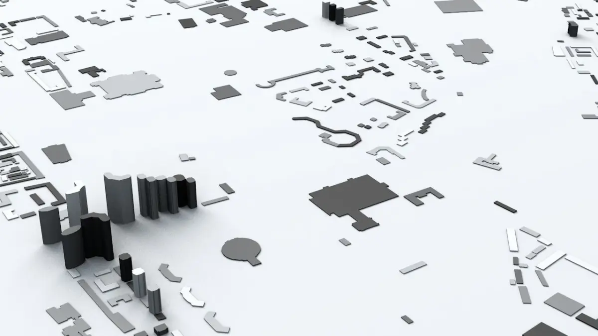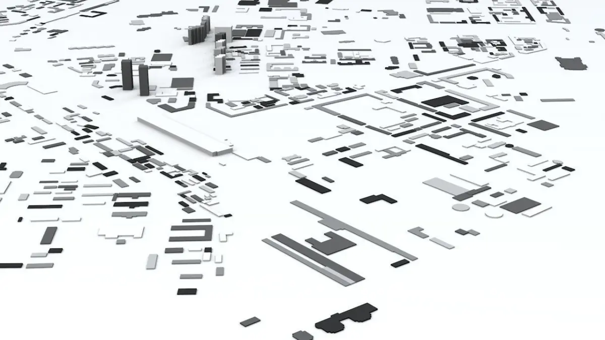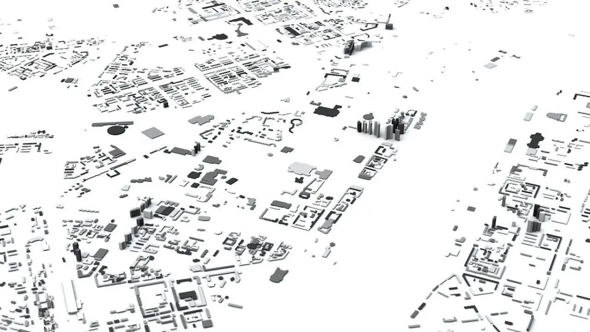 - the model is positioned on a flat surface (all buildings are on the “floor” - no elevation data included)