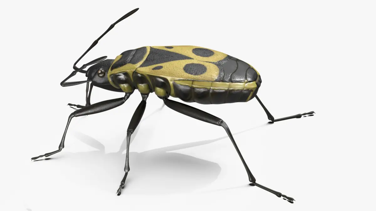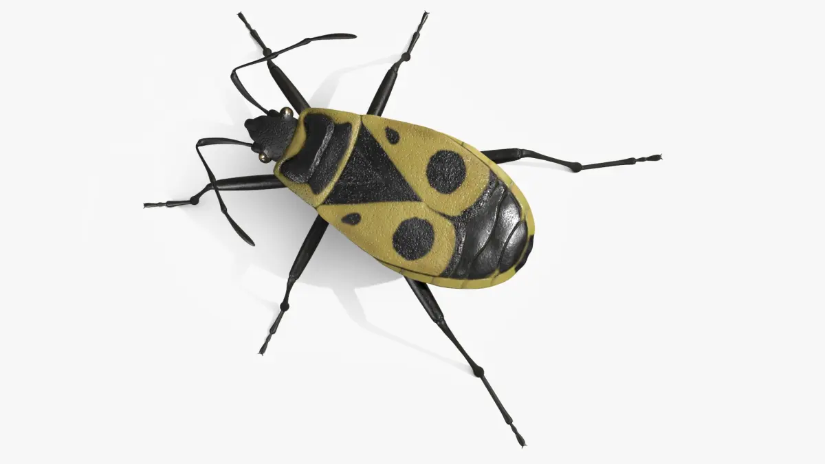 Pyrrhocoris Apterus Bug Yellow Black is a three-dimensional model of a firebug (Pyrrhocoris apterus), that is a common insect species.
