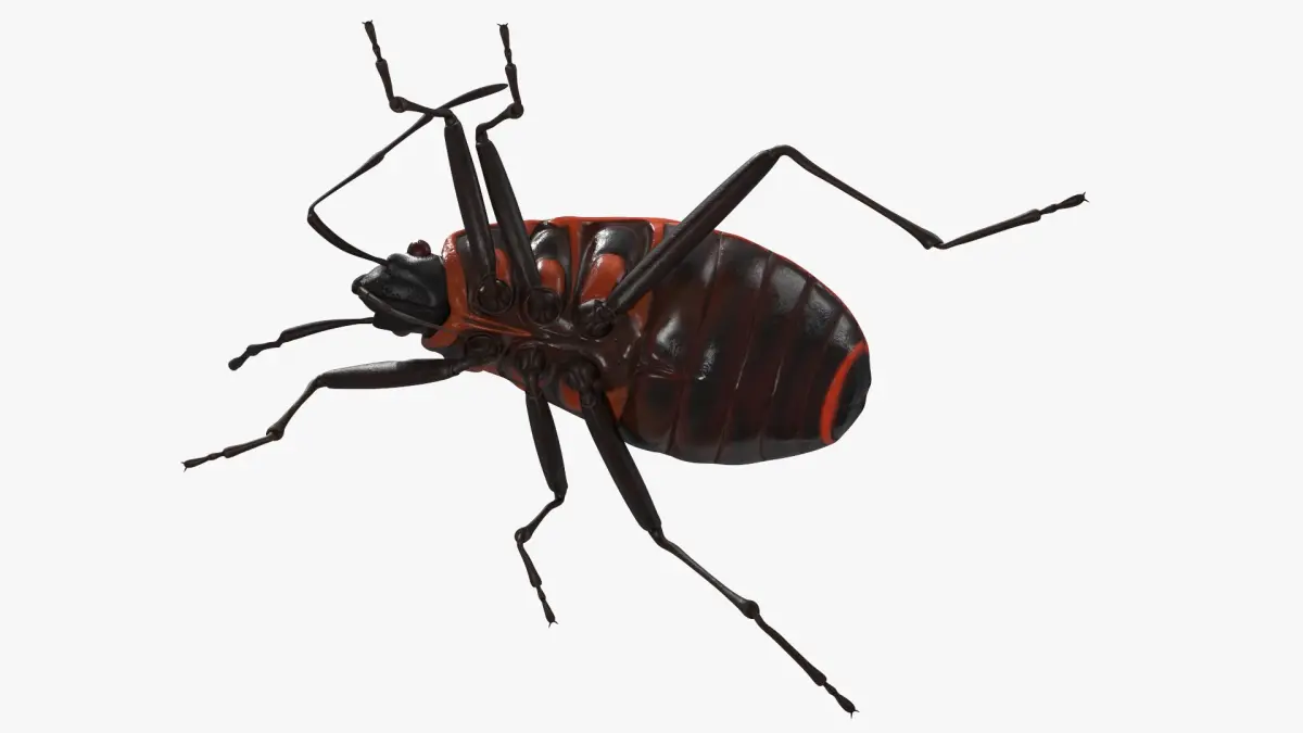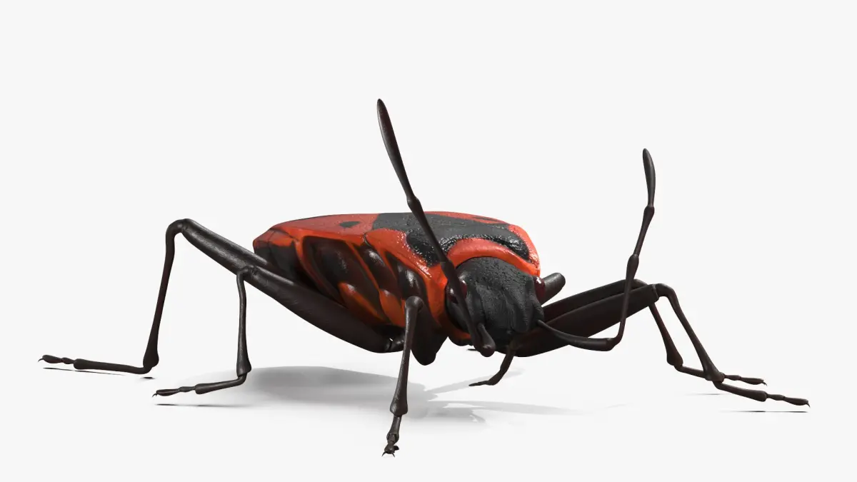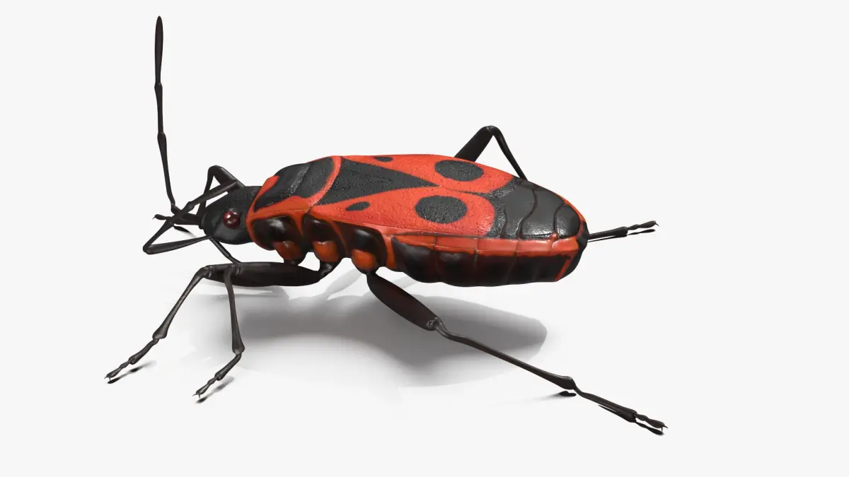 Pyrrhocoris Apterus Crawling Insect Red Black is a three-dimensional model of a firebug (Pyrrhocoris apterus), that is a common insect species.