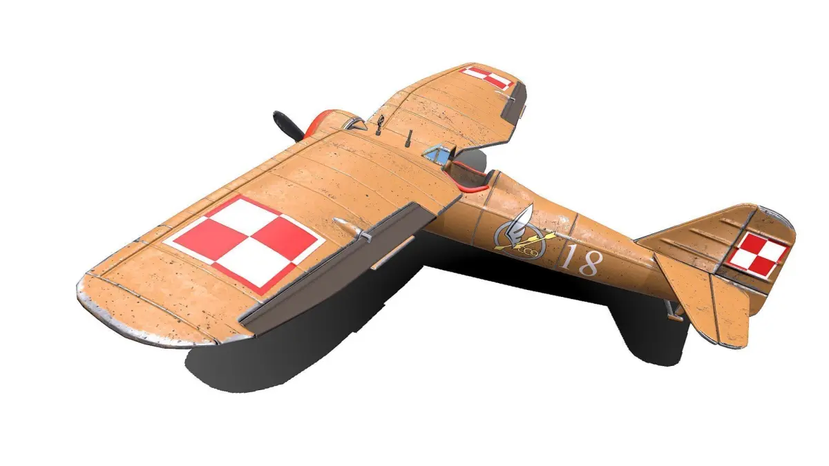 PZL P.7 Polish Fighter Aircraft polygons: 6534 verts: 5551