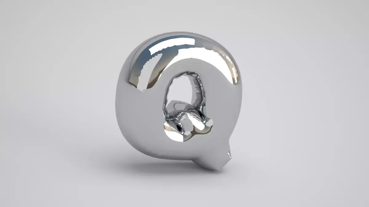 Realistic 3D Model OF Balloon Q Alphabet Silver