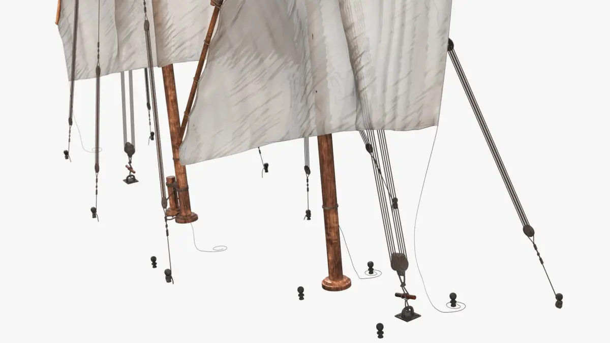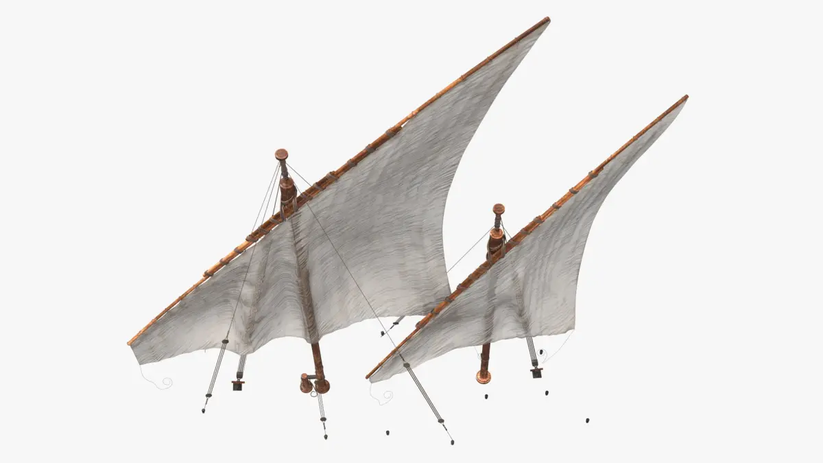 Qatar Dhow Sails Unfolded is a 3d model of a traditional sailing rig, specifically designed for lugger boats, known for their versatility and performance in various wind conditions.