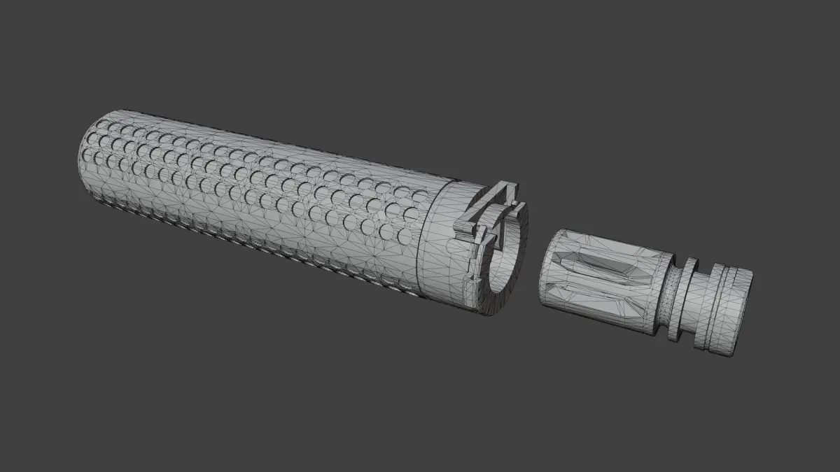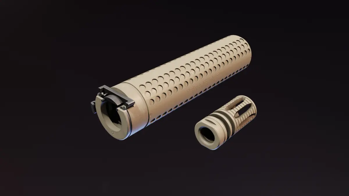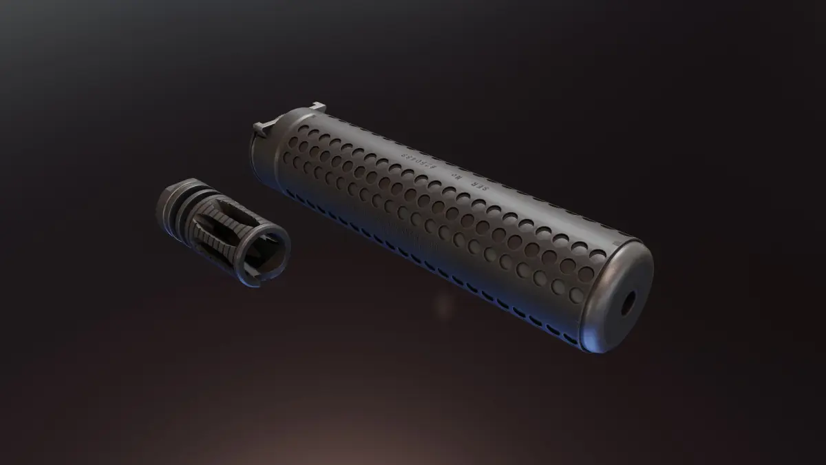 Suppressor and flash hidder have their own separate PBR Materials in 4K. Black and FDE colors are included.