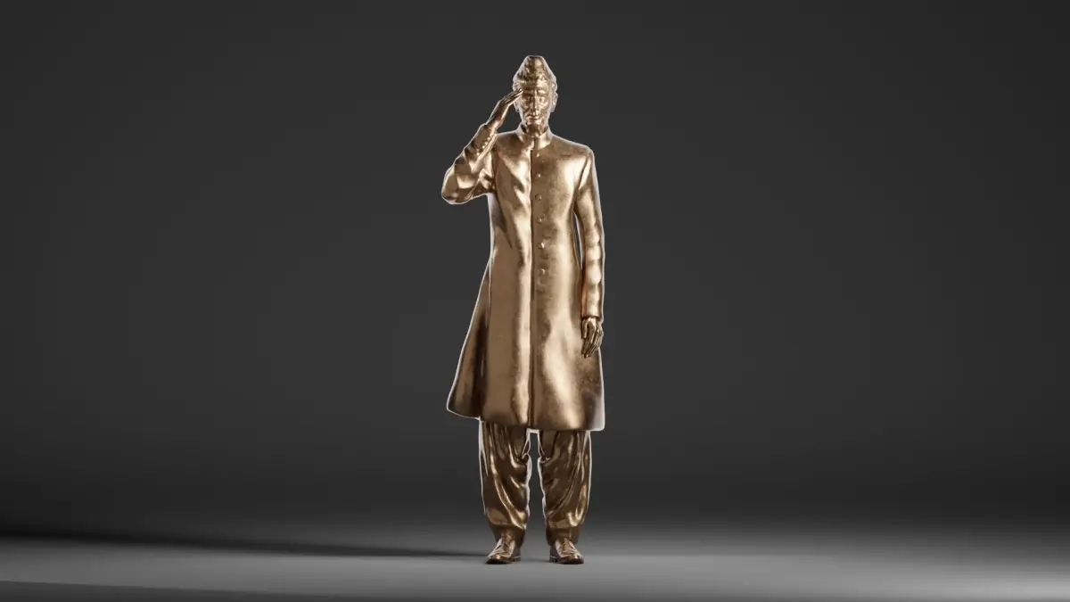 The Father of the Nation 3D sculpture in Bronze. Quaid e Azam Muhammad Ali Jinnah. This model is sculpted in high fedelity and non remeshed. Native file is in blender 3D and the rest of the formats may not contain textures. This model is suitable for 3D printing and game use. If you have any questions, drop a message. Thank you.