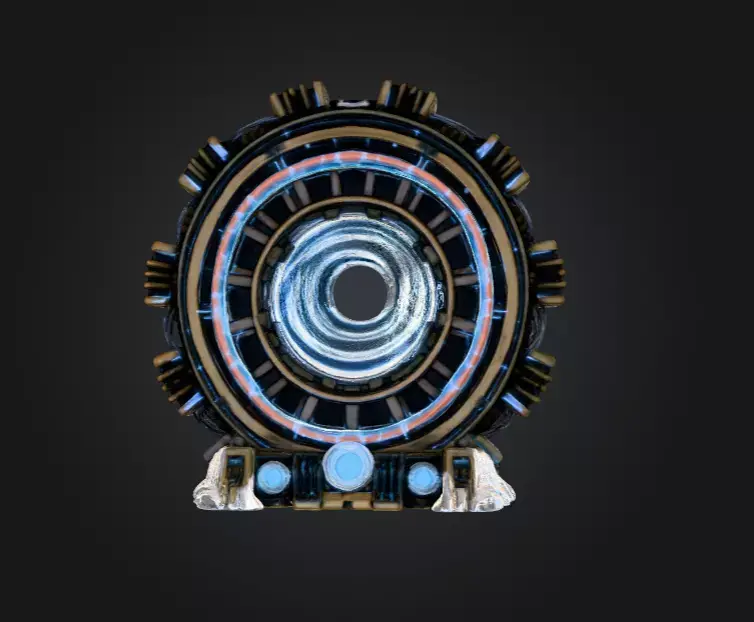The model’s design blends industrial engineering with cosmic aesthetics. Reinforced metal ribs, mechanical clamps, and glowing nodes anchor the structure, while the portal core radiates bright energy—perfect for teleportation sequences, wormholes, dimensional gateways, or high-tier sci-fi machinery. The illuminated inner tunnel, with its spiraling distortion effect, hints at instantaneous travel or dangerous temporal experiments gone wrong.