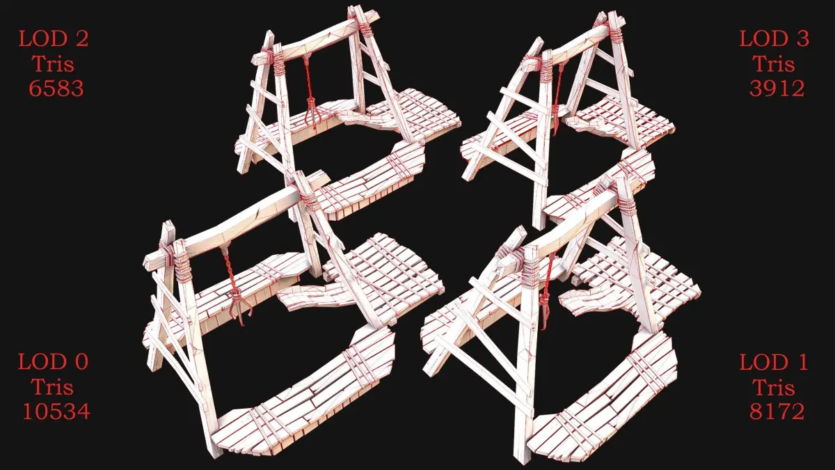 - Edges: 11305(LOD0),19306(LOD1),9772(LOD2),8967(LOD3).