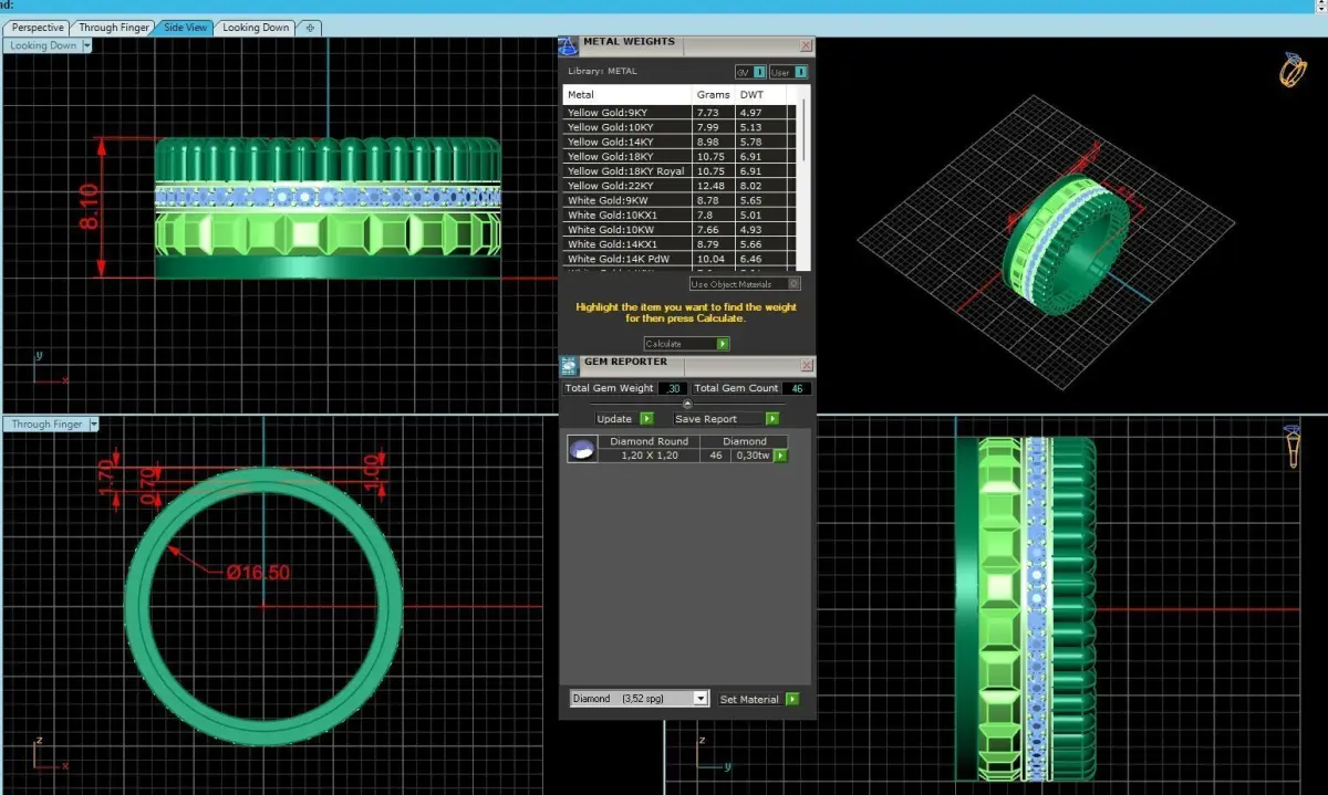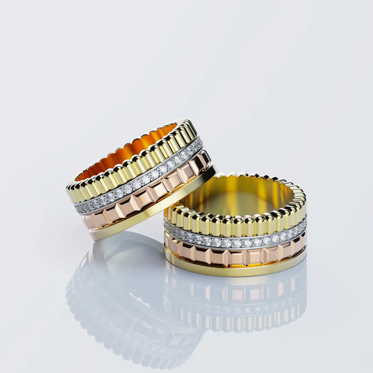 This collection of rings is ready for 3D printing.Ring sizes 15.5 16 16.5 17 17.5 18 18.5 19 mm. Approximate weight of rings by size(GOLD 14K): 15.5mm-8.49g 16mm-8.74g 16.5mm-8.98g 17mm-9.23g 17.5mm-9.48g 18mm-9.73g 18.5mm-9.97g 19mm-10.22g. Width - 8.1mm. Thickness - 1.7mm. Round stones - 1.2mm.