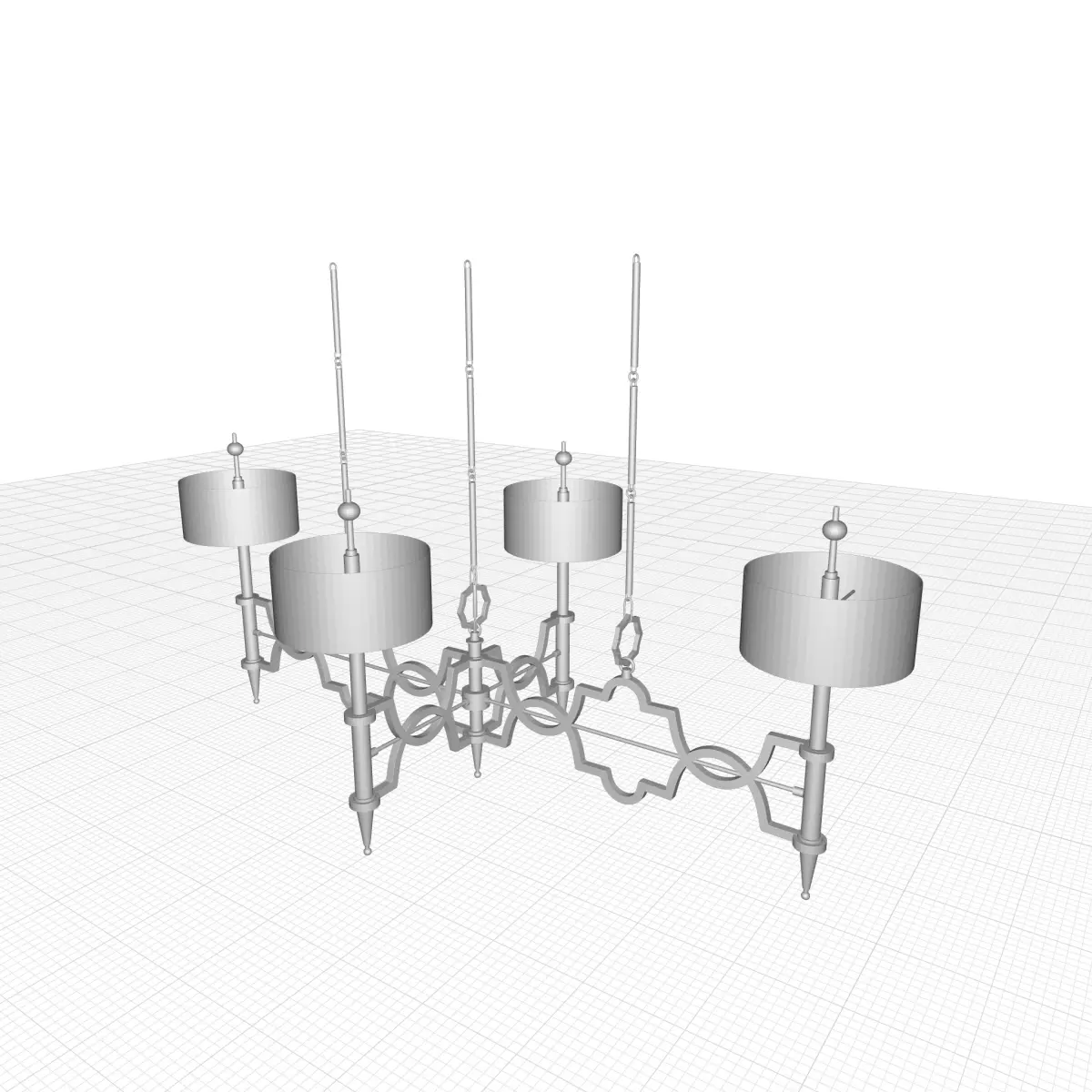 - The quatrefoil decorative grill on the pendants is aluminum with a nickel finish; the hammered shades on the pendant lights are nickel coloured stainless steel with solid nickel stems. The three-rod chains meet in a single oblong canopy.
