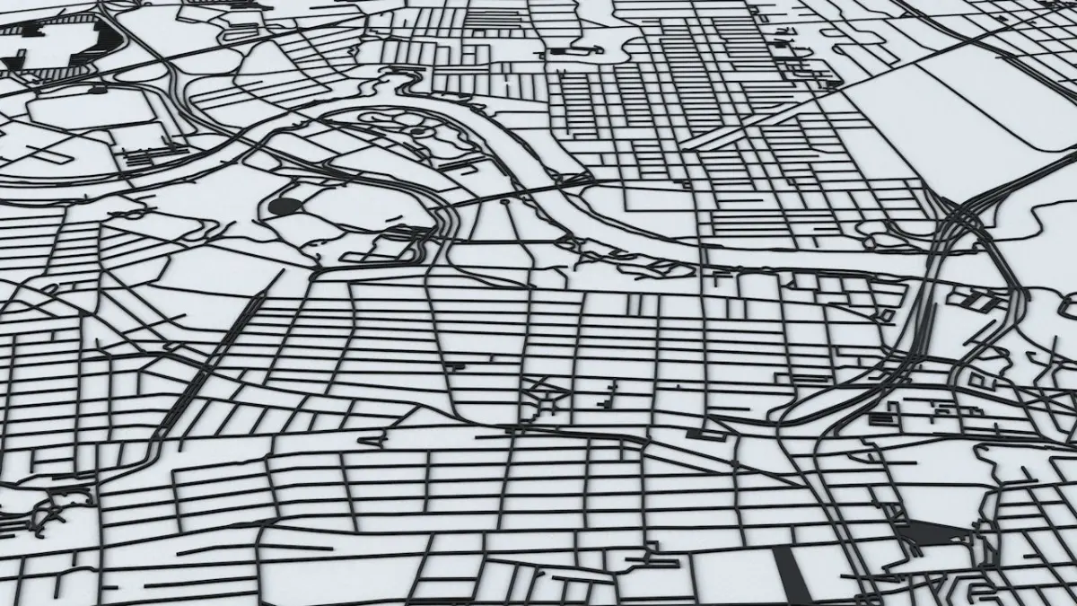 - the model is positioned on a flat surface (road network is on the “floor” - no elevation data included)