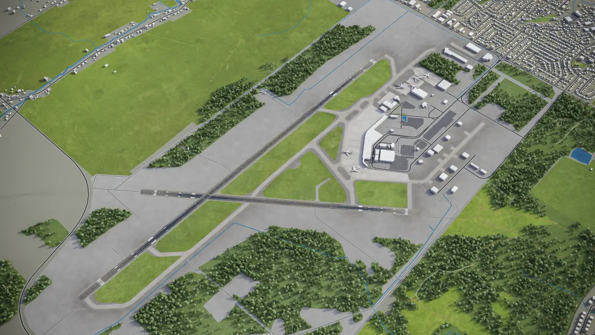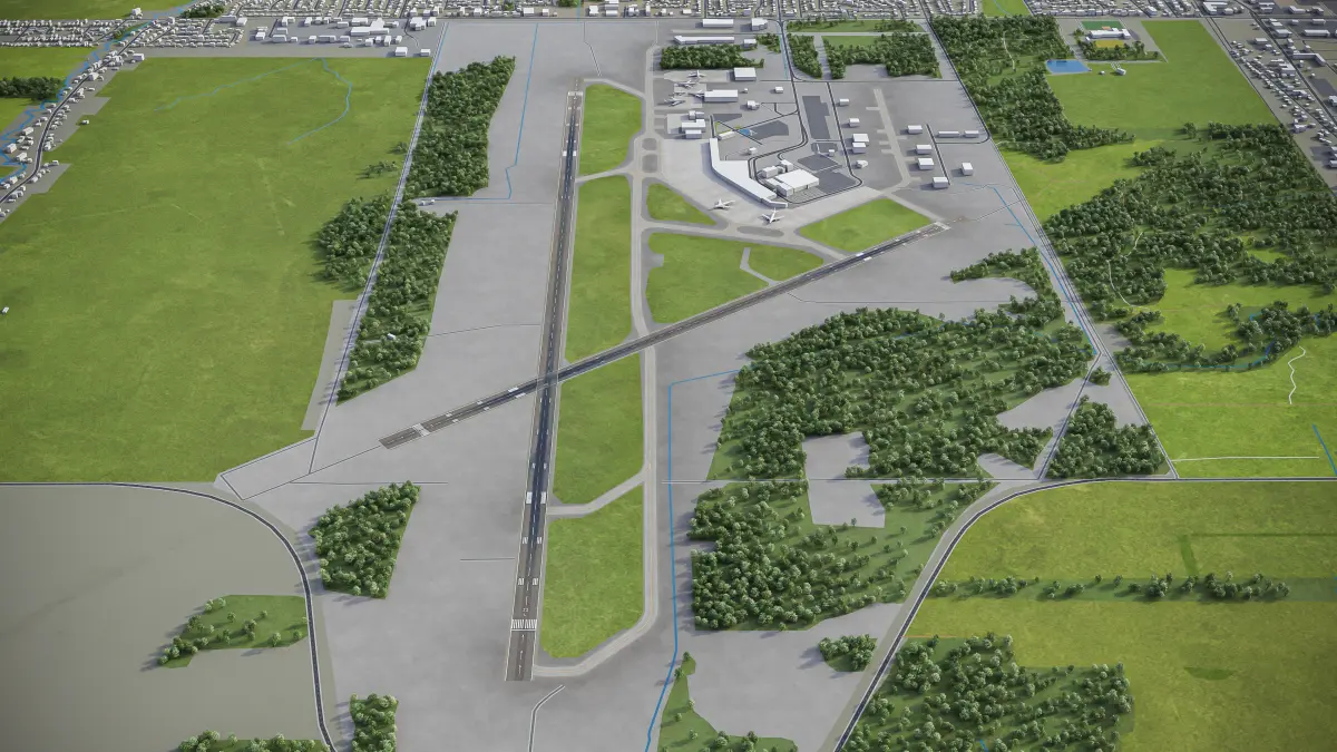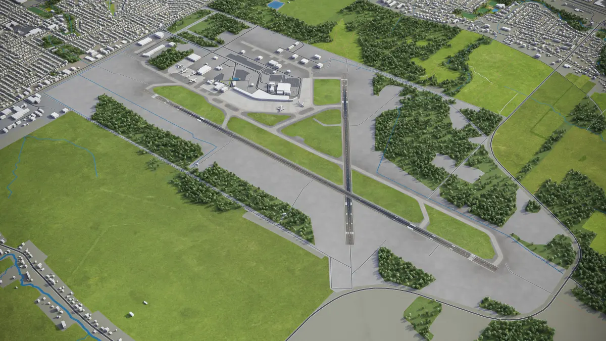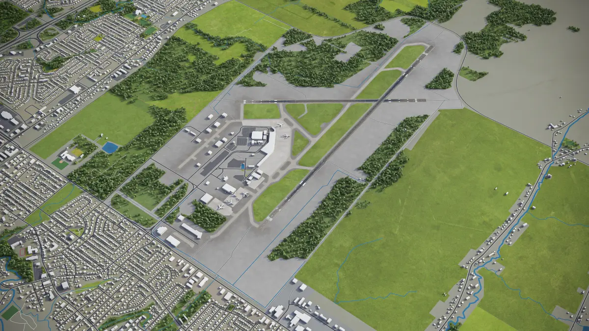 This is the exact and accurate to-scale 3D model of Quebec City Jean Lesage International Airport and its surrounding area based on GIS data (August 2021)
