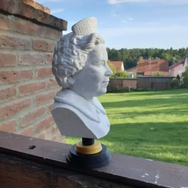 Queen Elizabeth bust with commercial licence.When you buy this model you have the right to sell the PRINTS. You do not have the right to sell .stl file.Model was made by Anar Aliyev from Fiverr: https://www.fiverr.com/anaraliyevI commisioned him to sculpt it for me.