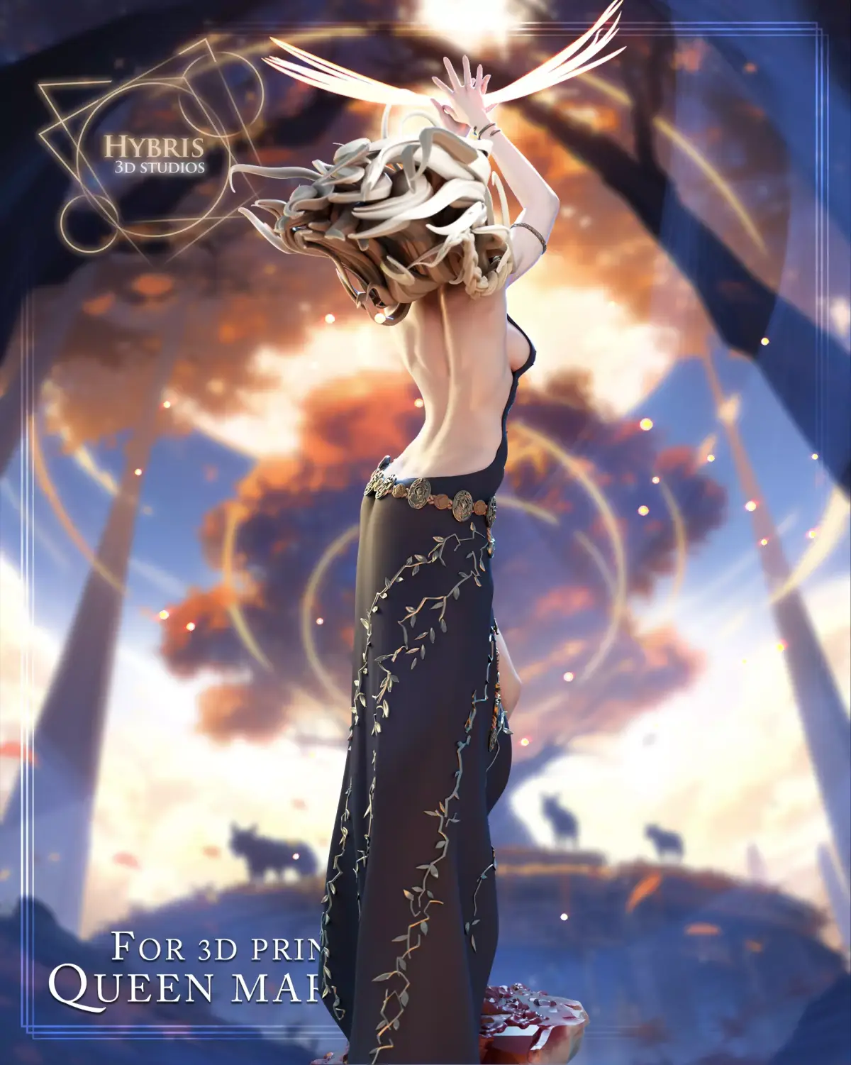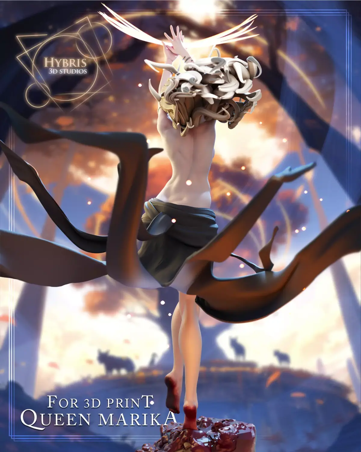 3D printable Queen Marika from Elden Ring, sliced and keyed heavily detailed, ideal for resin print.Hybris Studios Only Licences the use of it's files for commercial purposes but we are not shareholders or IP holders that the fanart is inspired on.