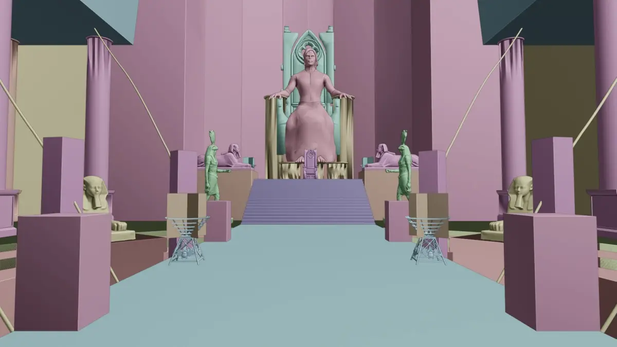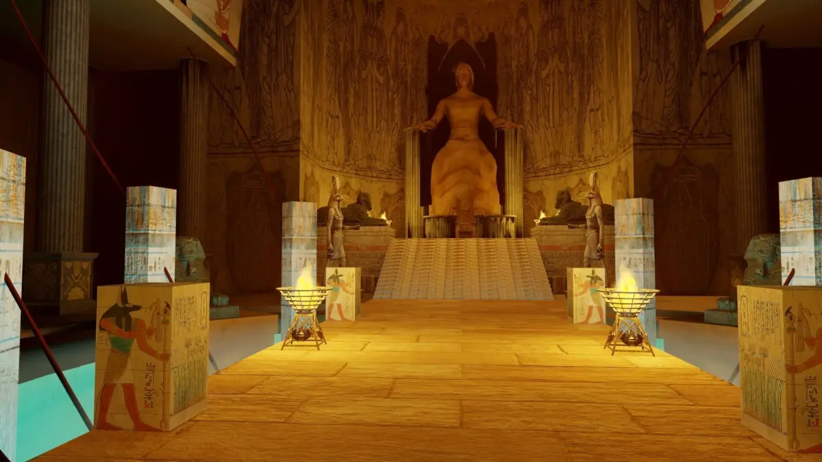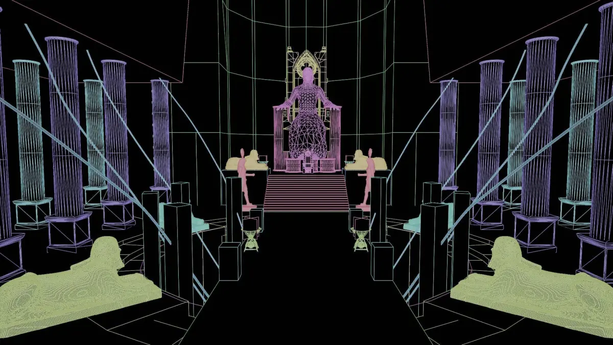 This highly detailed cinematic set is designed to represent the ultimate seat of power, where queens ruled, souls were judged, and sacred laws were passed.