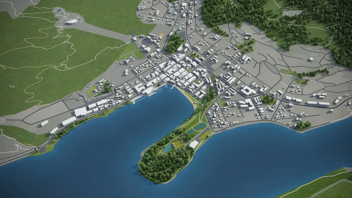 - Full city extents up to 100 x 100 km — or crop to an area of interest for better format compability and scene performance