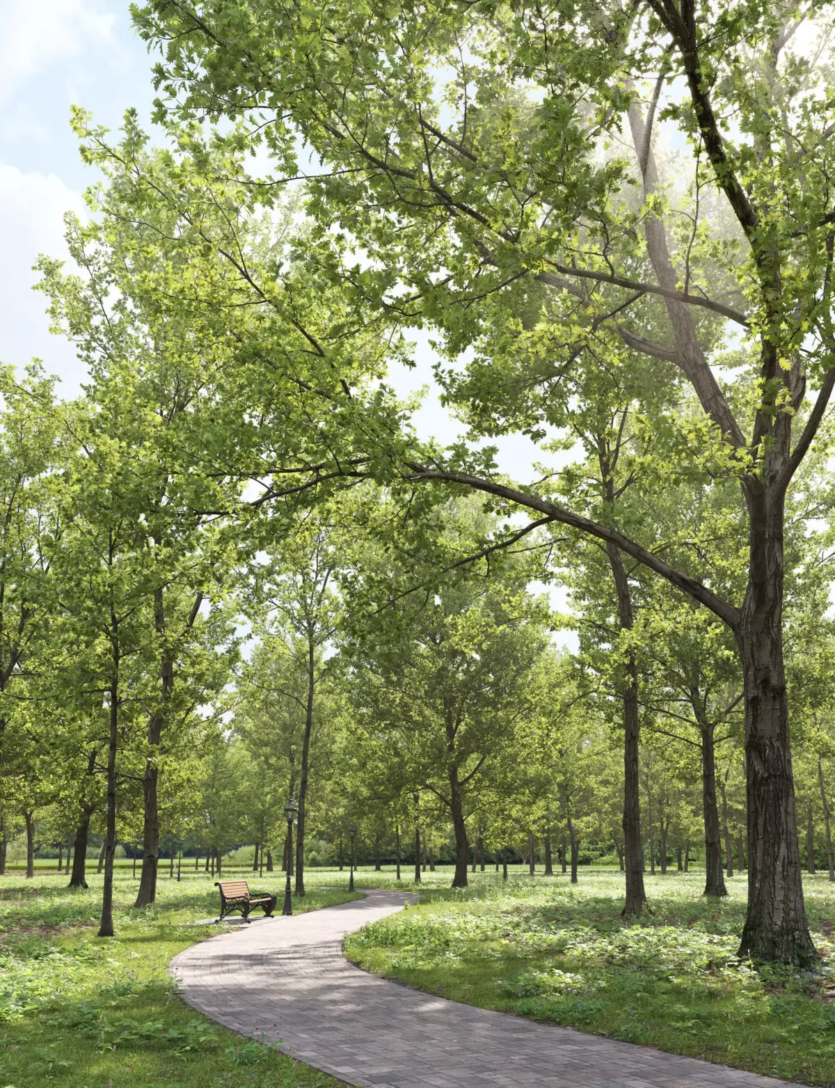 The trunk, branch, and leaf material uses an opacity and displacement map.