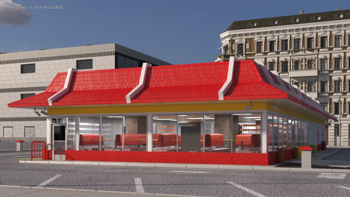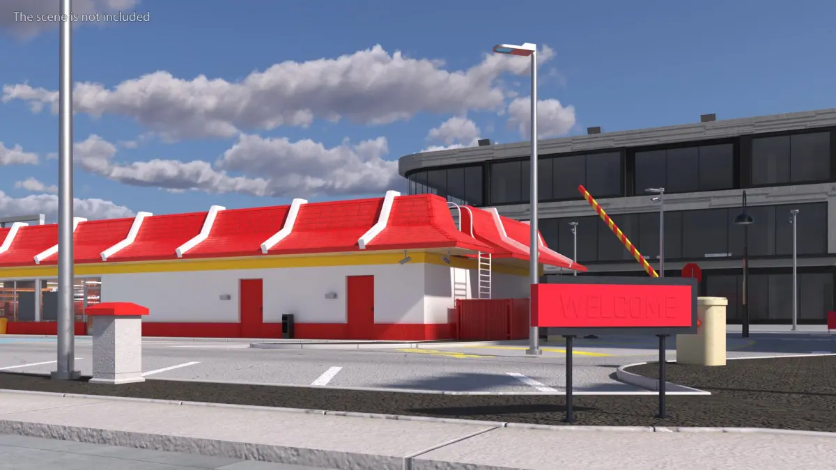 Quick Service Restaurant with Land Base is a high quality, photo real 3d model that will enhance detail and realism to any of your rendering projects. The model has a fully textured, detailed design that allows for close-up renders, and was originally modeled in 3ds Max 2020 and rendered with V-Ray. Renders have no postprocessing!