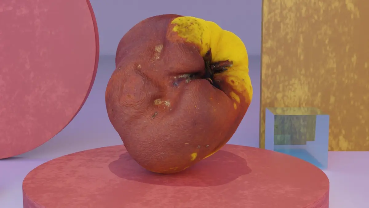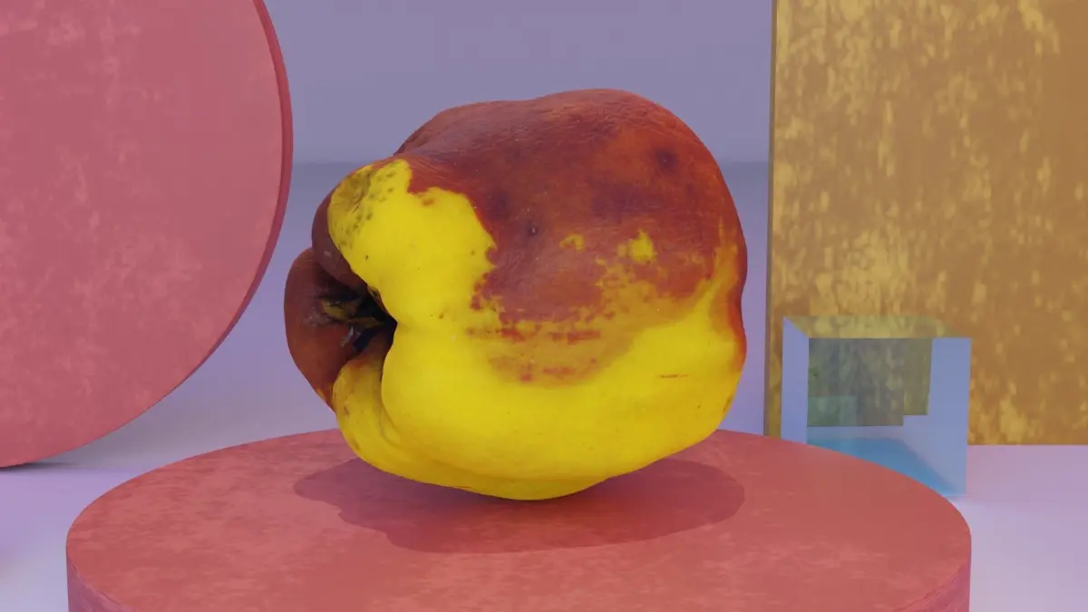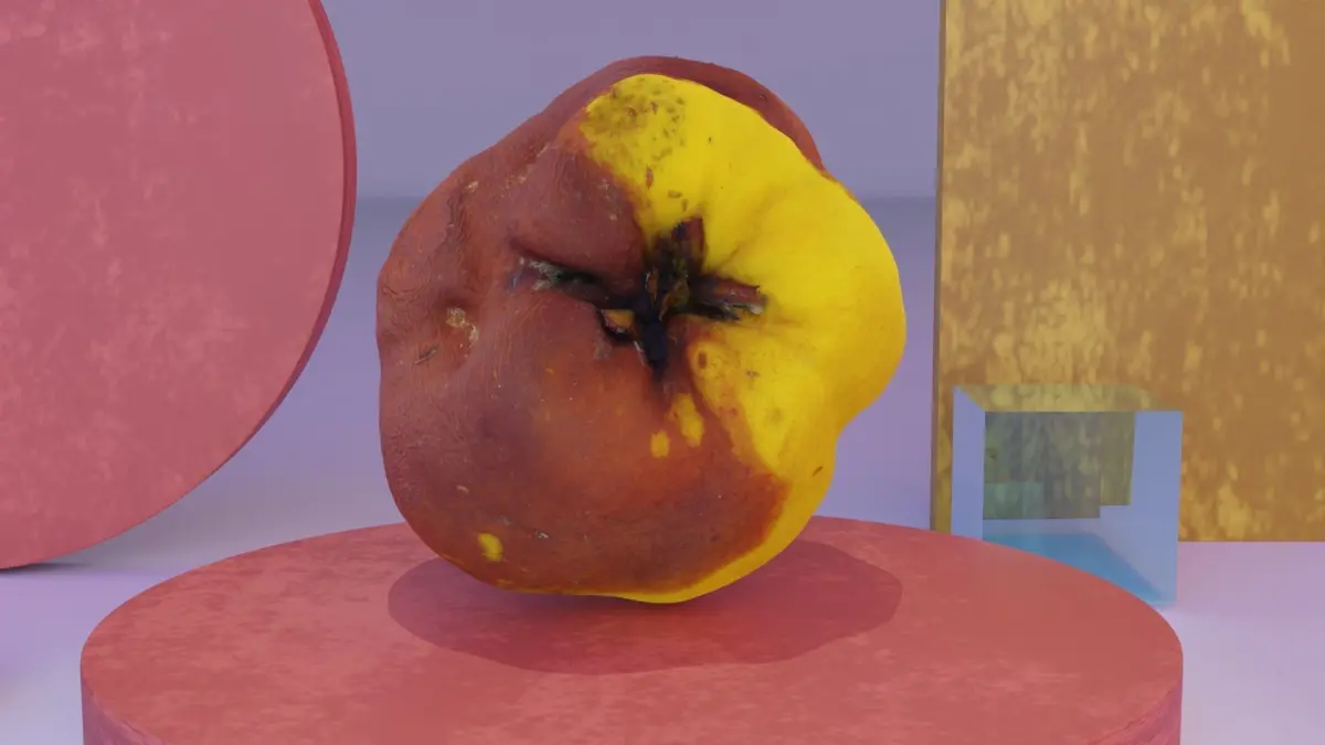 This is a photorealistic high-poly 3D model of the quince fruit gone bad.