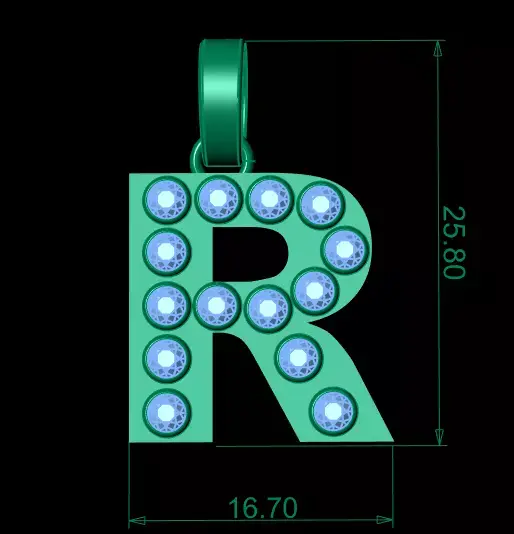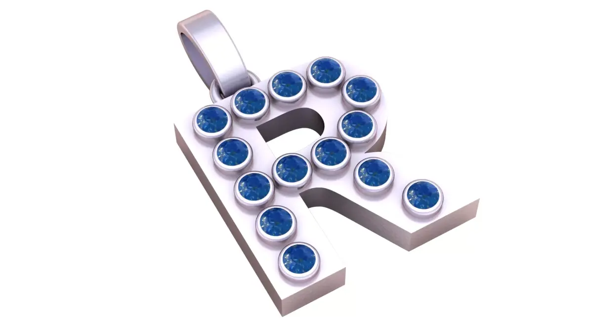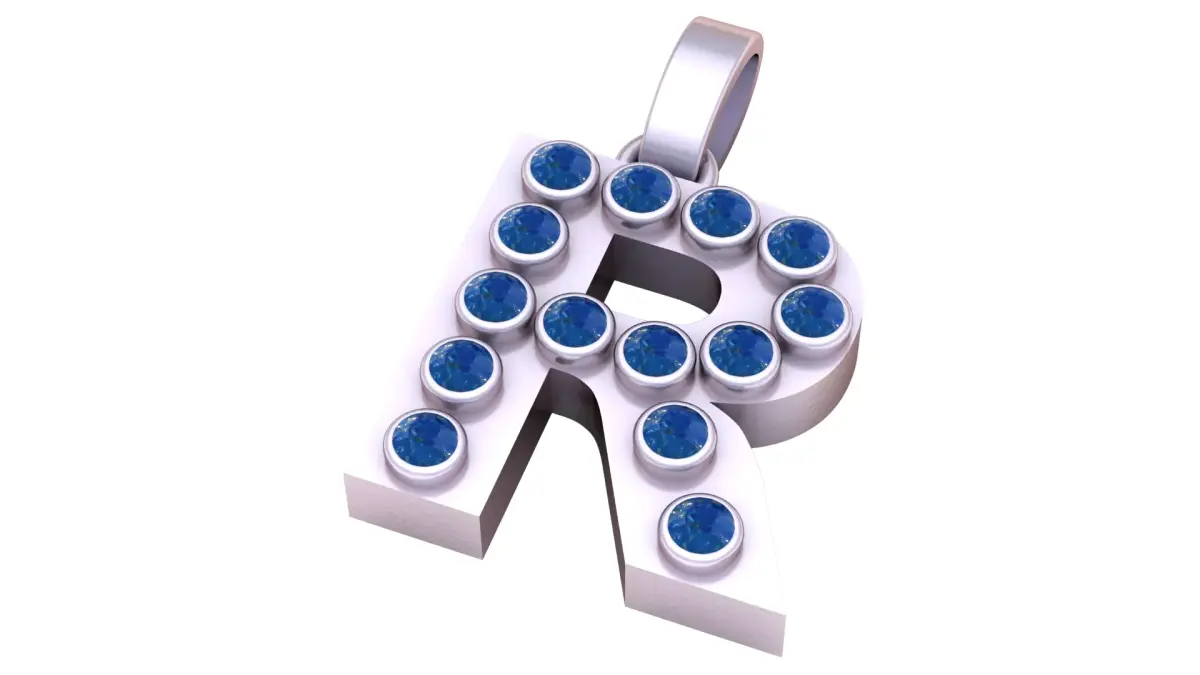 R Initial Gold Pendant Ruby Stone Alphabet Necklace 3D print model