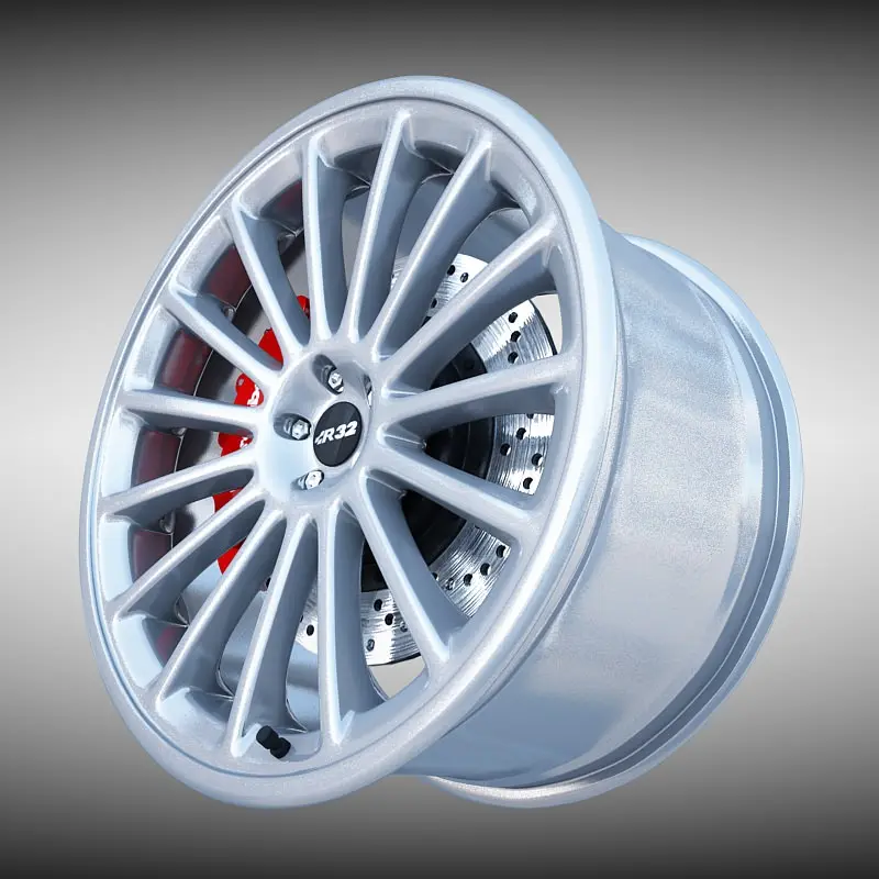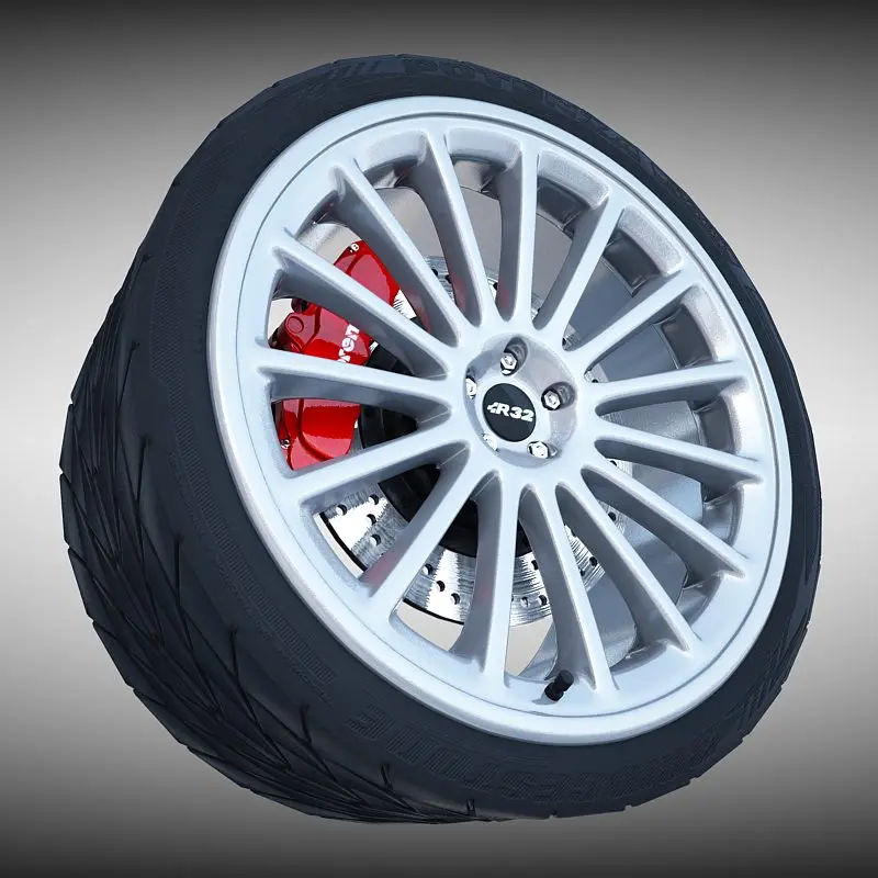 * 3D Model of a Volkswagen R32 Wheel Wheel with Tire, Brake Disk and Caliper - With Textures and Materials - Ready To Render in Your Scene